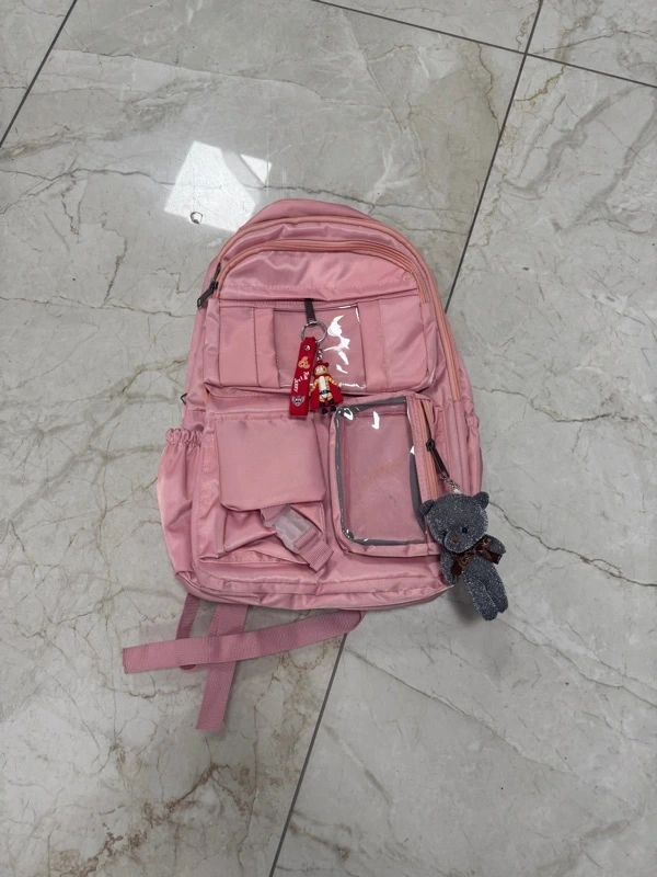 2 Gözlü Ayı Model Kore Tarzı İlkokul Sırt Çantası Anahtarlı Koyu Pembe