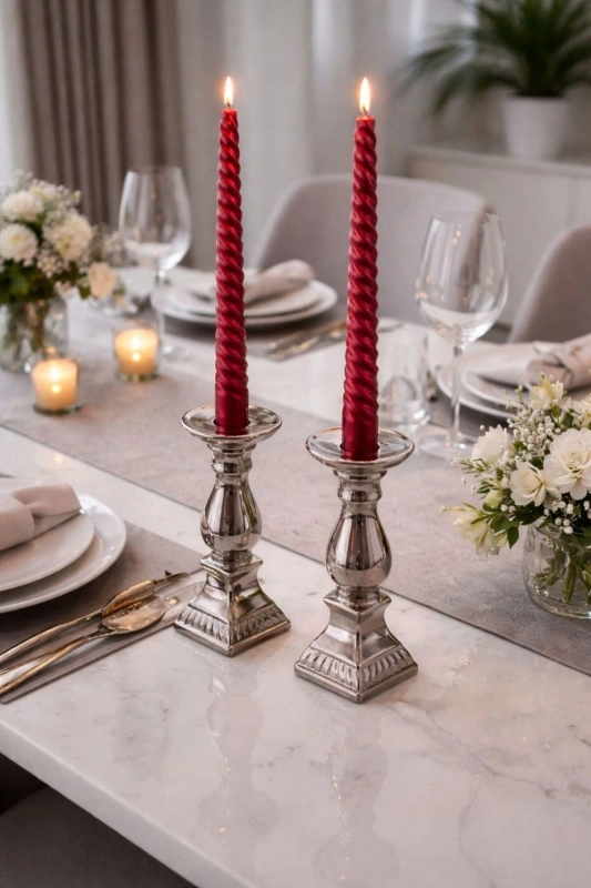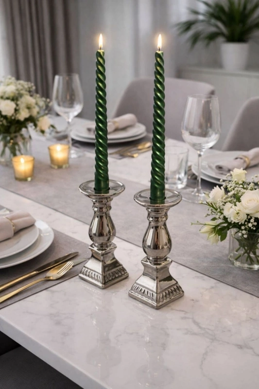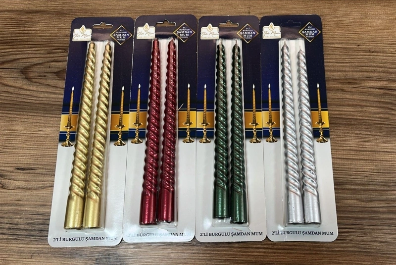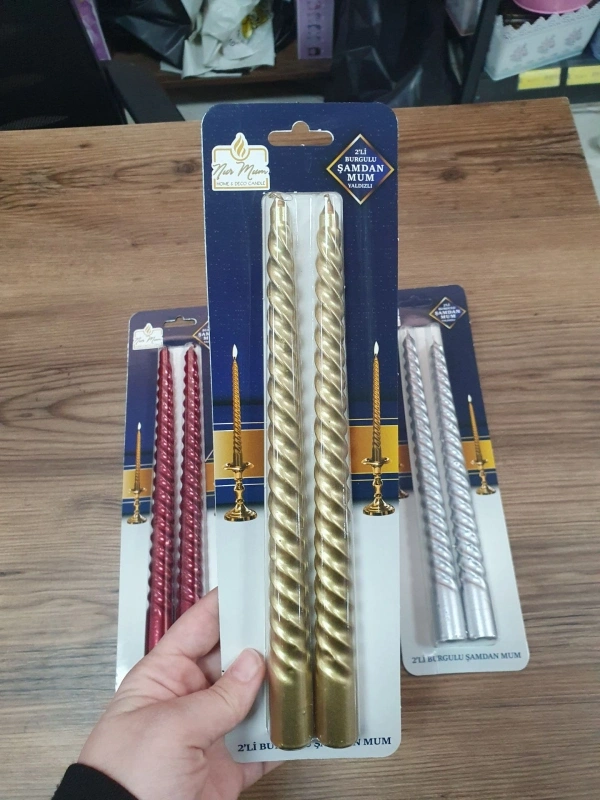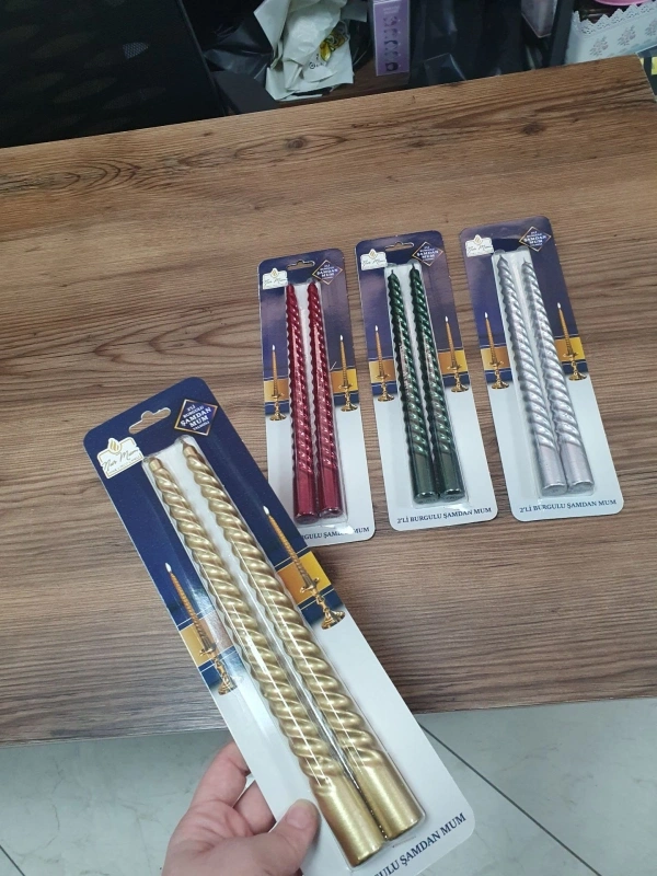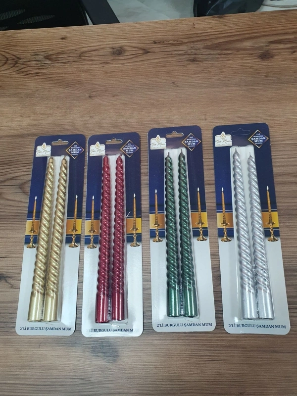 2'Li 26 Cm Yaldızlı Burgulu Şamdan Mum