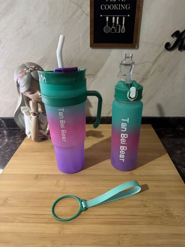 Bardaklı Çift Ağızlı Şeffaf Ayıcık Matara 1100 Ml