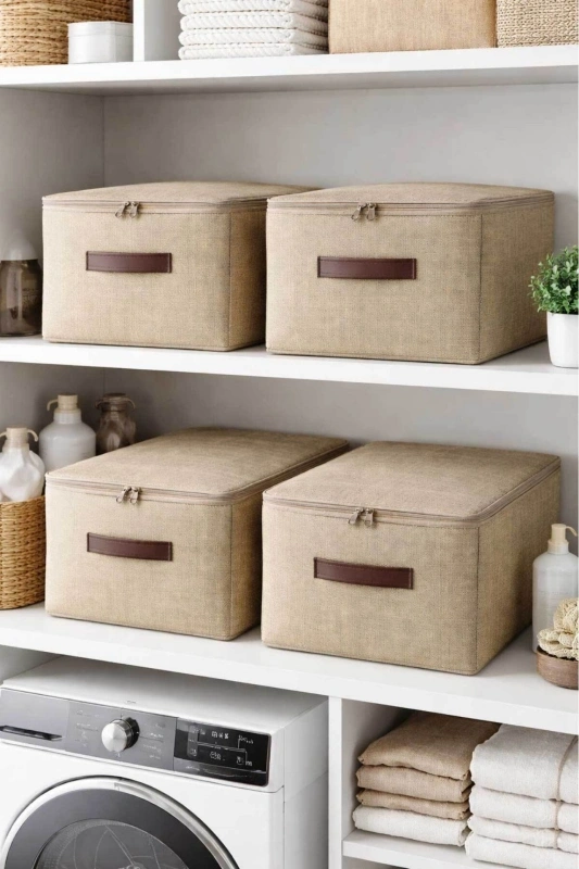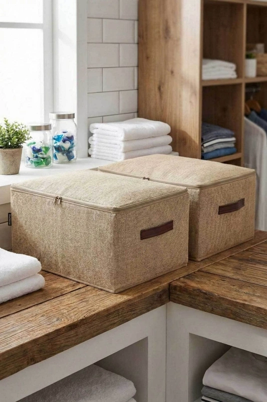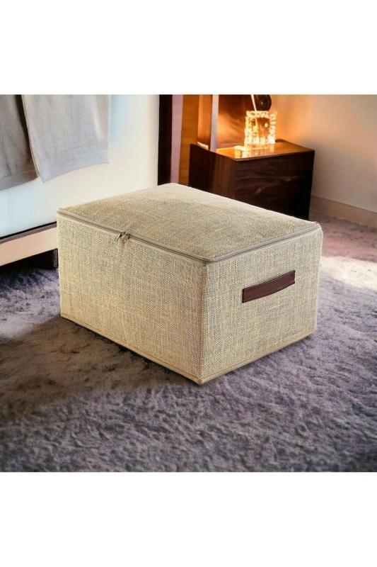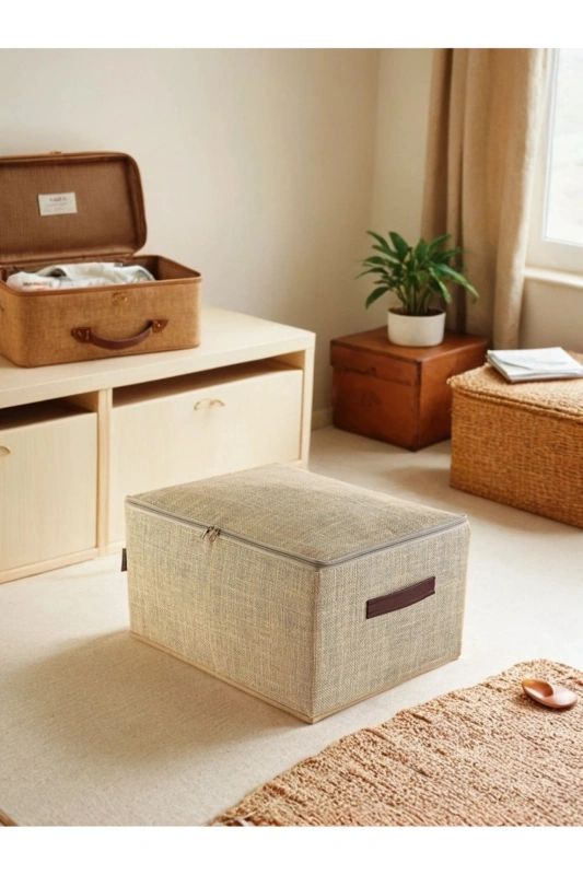 Orta Boy Jüt Kumaş Deri Saplı Baza Altı,dolap Içi Destekli Hurç 35x42x23 Ürün Açıklaması