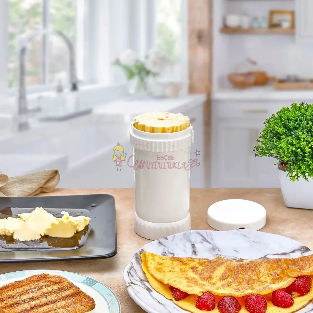 • Tereyağı Saklama, Ölçme, Yayma ve Kesme Aparatı. Tamamen yerli üretim olan tasarım patentli tereyağı aparatı ürünümüz , tereyağınızı bozulmadan sağlıklı bir şekilde saklamanıza ve düzenli bir şekilde el değmeden kullanmanıza olanak sağlar.