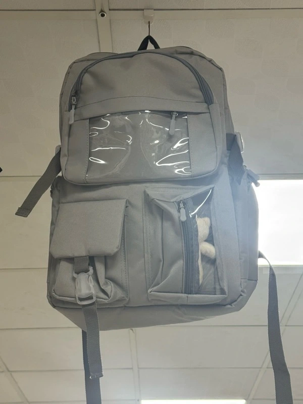 Ayı Model Kore Tarzı İlkokul Sırt Çantası Somon Gri Fileli