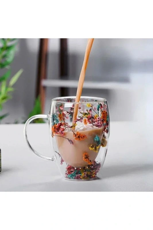 CİDARLI ÇİÇEKLİ SAPLI BARDAK 250 ML