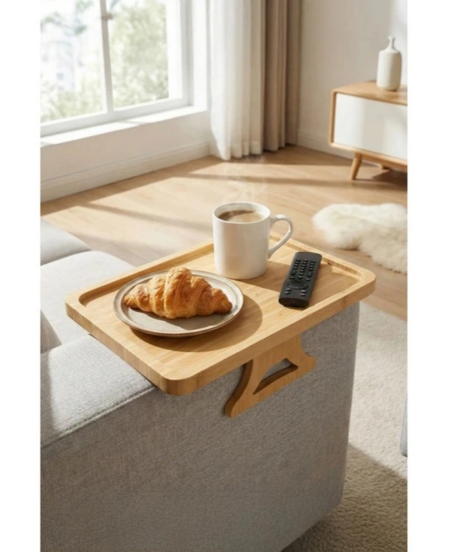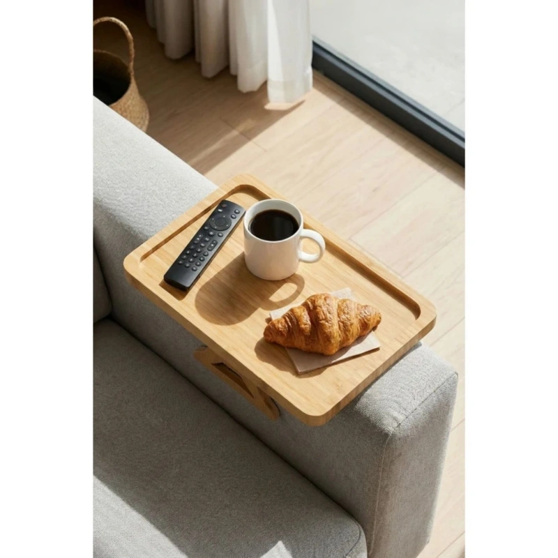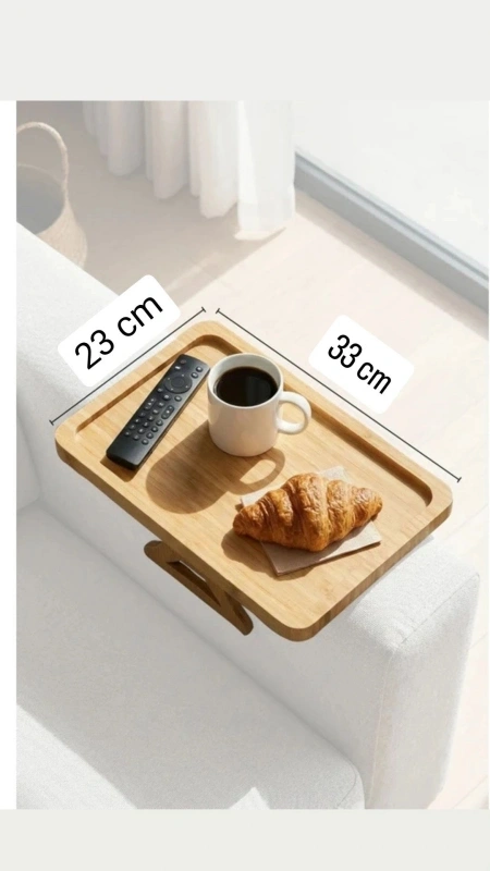 D. Bambu Koltuk Kenarı Tepsisi Ayaklı Dikdörtgen 23 x 33 cm