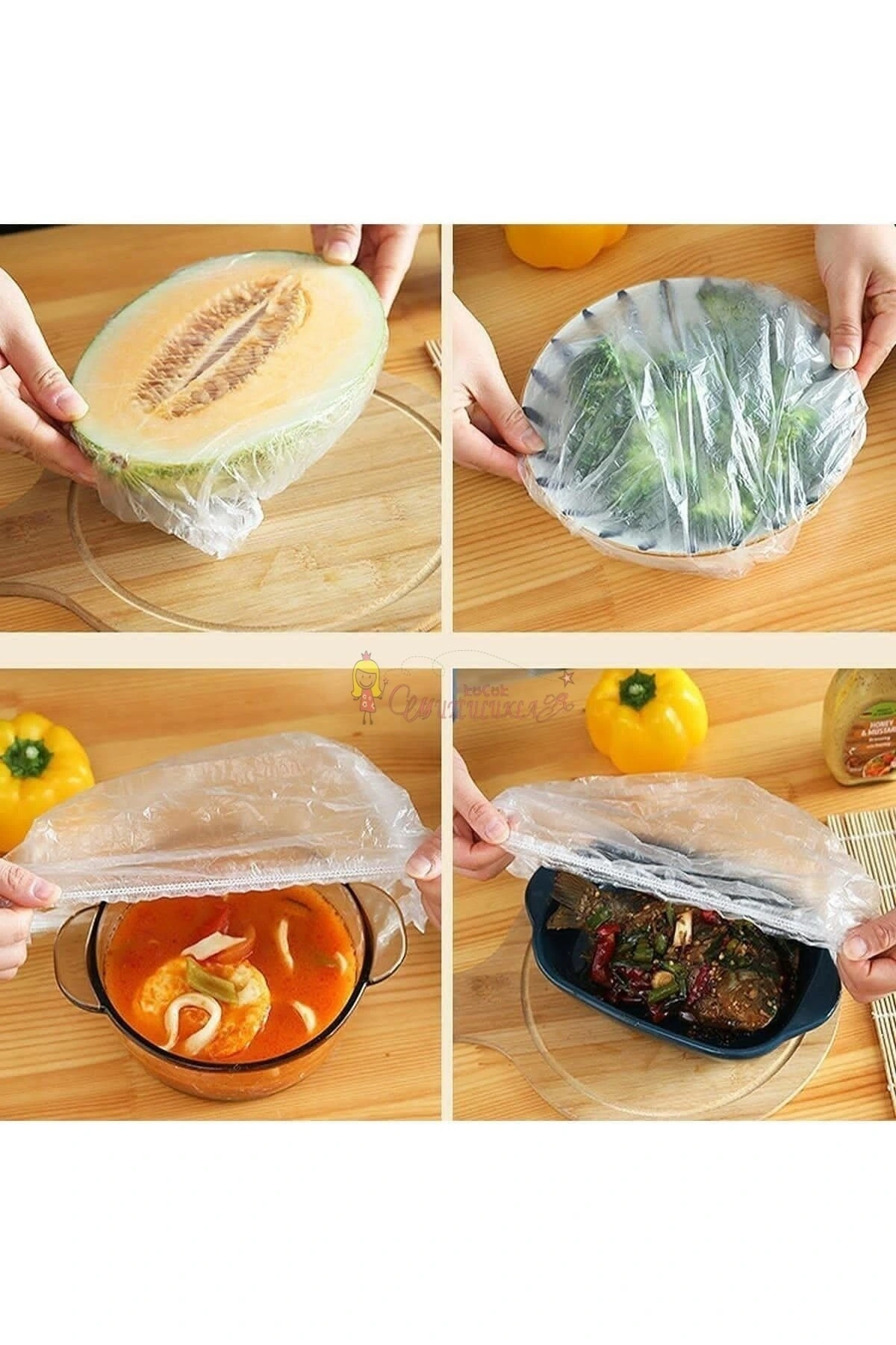 100 Adet Lastikli Tazeliği Koruyan Tencere ve Tabak Bonesi Esnek Strech Kapak