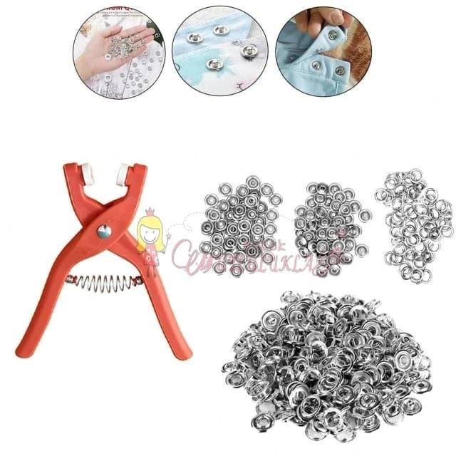Çıt Çıt Düğme Ve Pensesi 100 Set Çıt Çıt Metal Düğme Yapma Seti