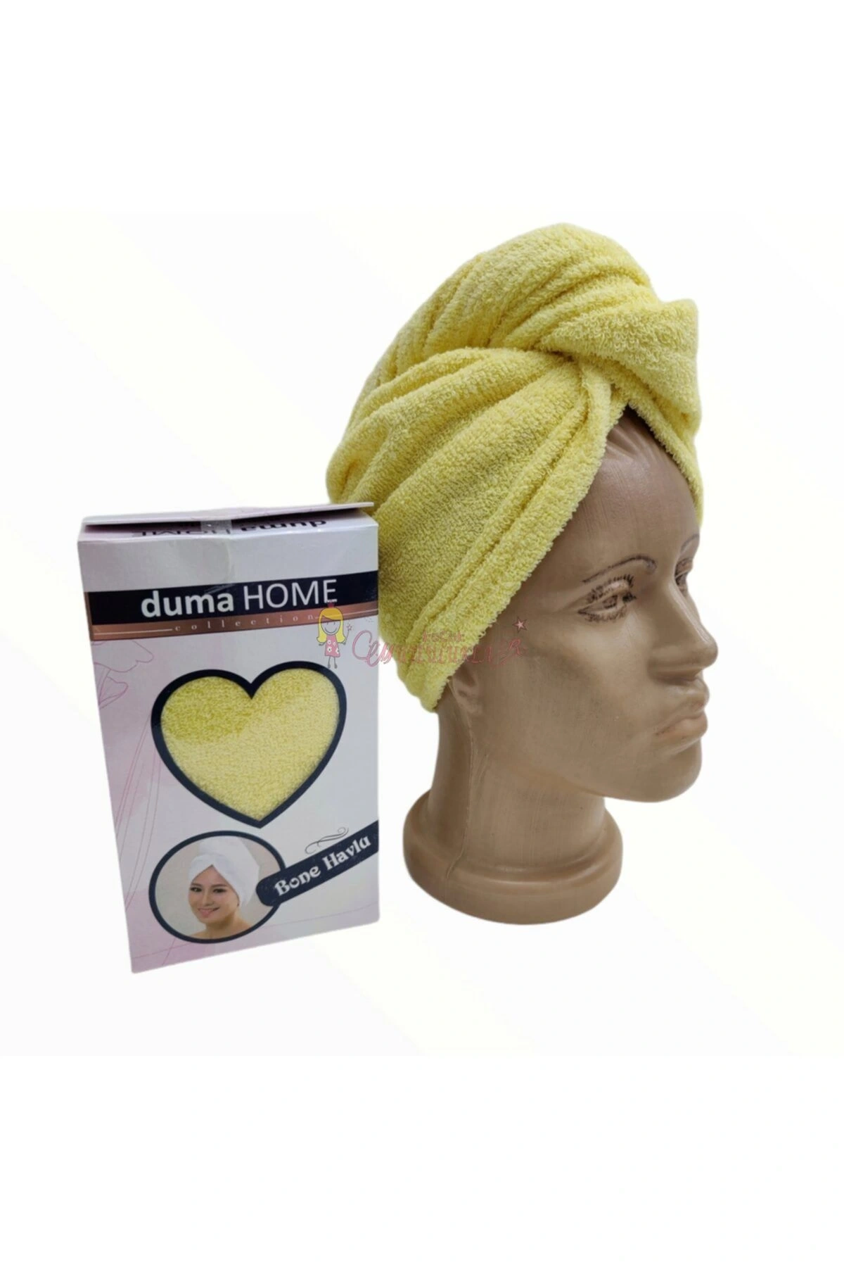 Düğmeli Havlu Saç Kurulama Bonesi Sarı Renk Bone Havlu