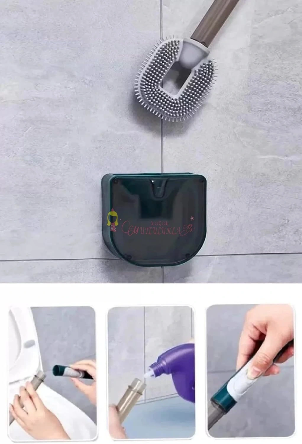 • Pratik Doldurulabilir Deterjan Hazneli Bükülebilir Silikon Tuvalet Fırçası Wc Klozet Fırçası