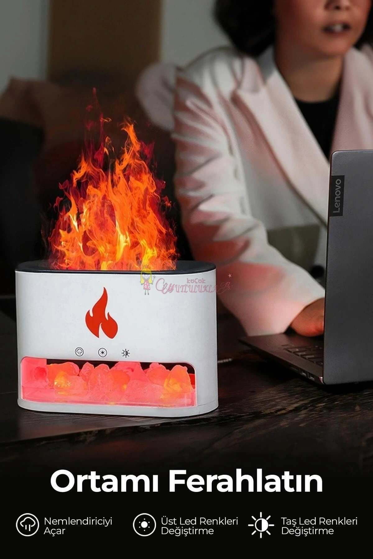 Şömine Hava Nemlendiricisi 4 Renkli Alevli ve Taşlı Buhar Makinesi