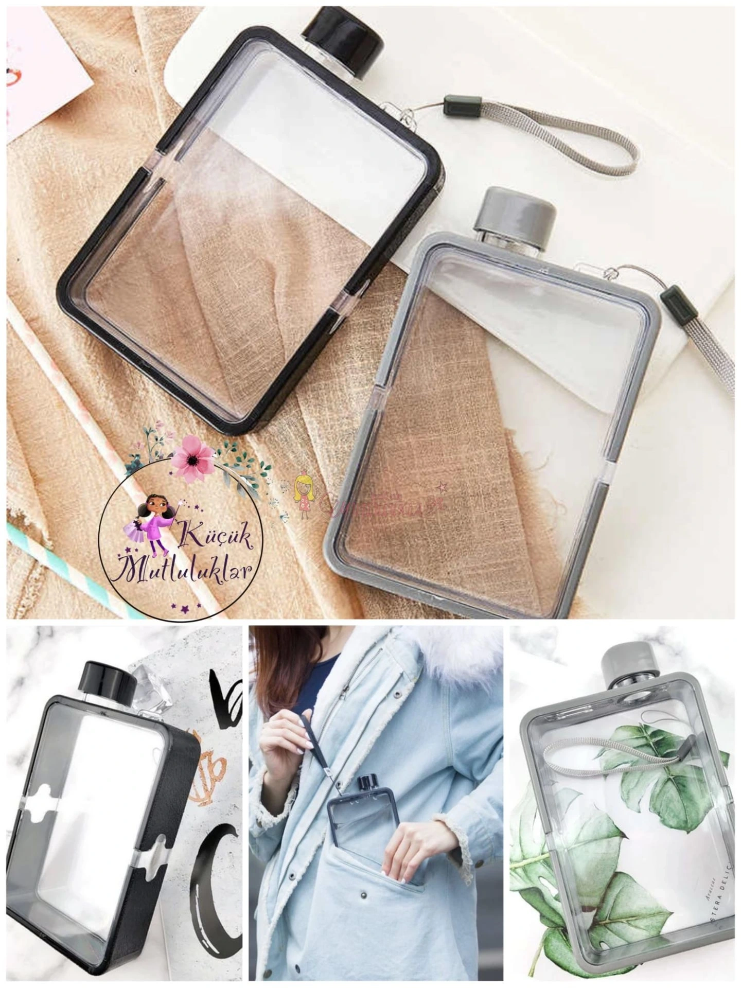 Tablet Matara Şeffaf Motivasyonel Stickerlı Çerçeveli A5 Şeklinde Su Matarası