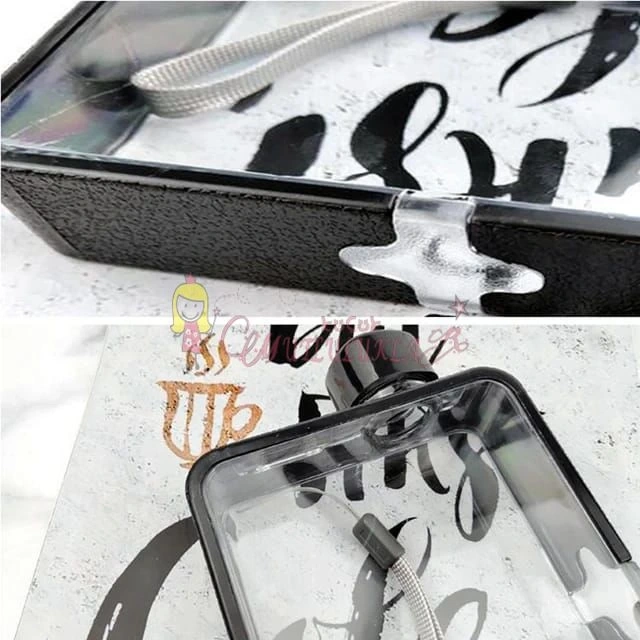 • 380ml Siyah Şeffaf Motivasyonel Stickerlı Çerçeveli A5 Şeklinde Su Matarası Spor Su Şişesi Suluk