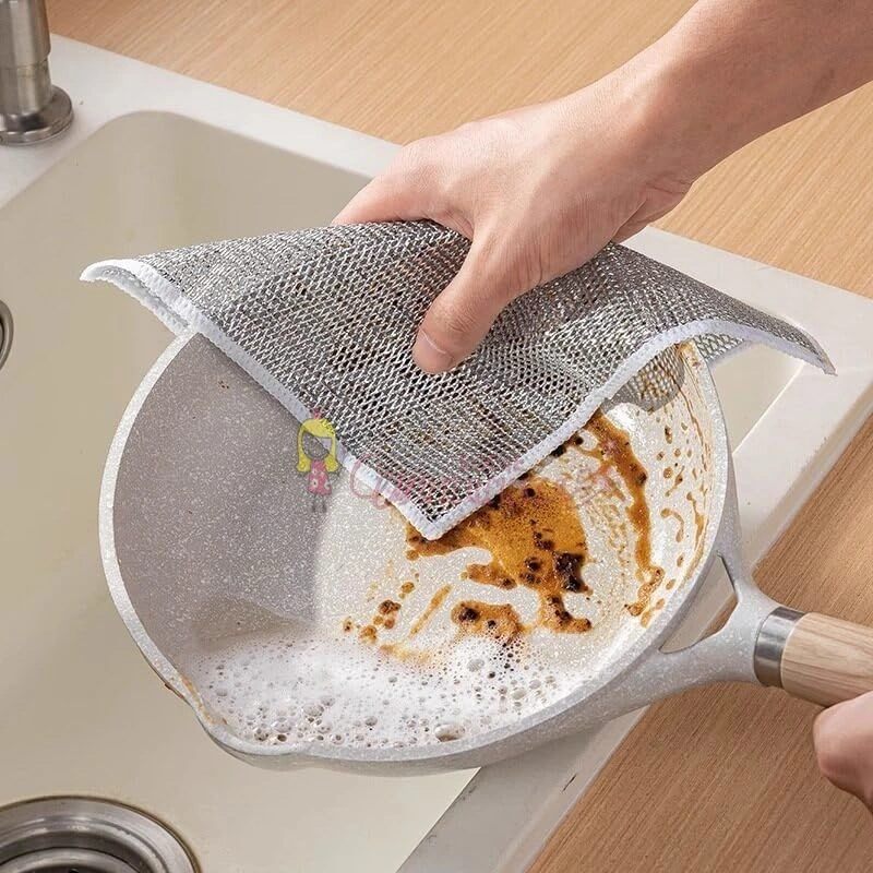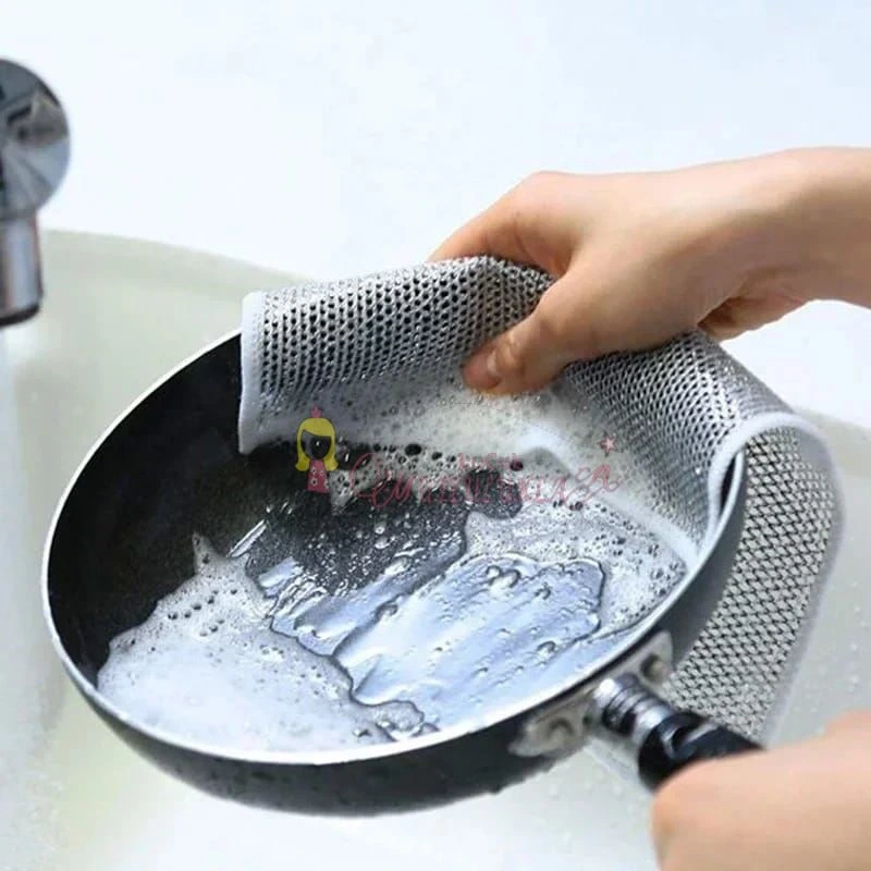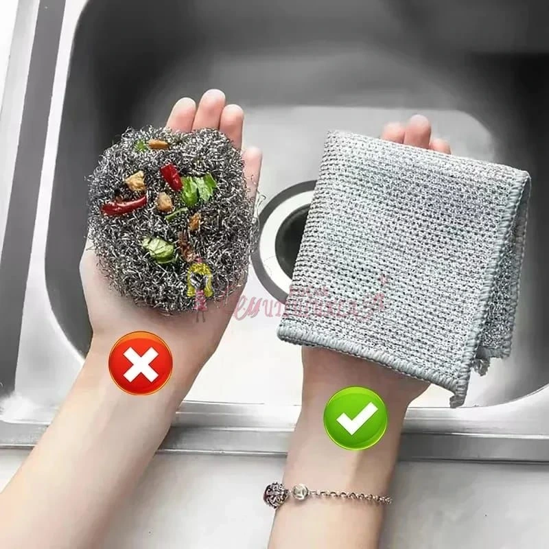 Yeni çift katlı telli zor kir bezi Çok Fonksiyonlu Çizilmez Tel Bulaşık Bezi, Islak ve Kuru Tel Bulaşık Bezi