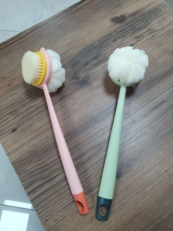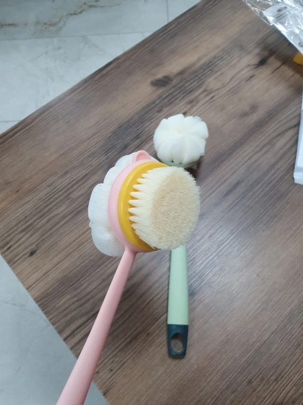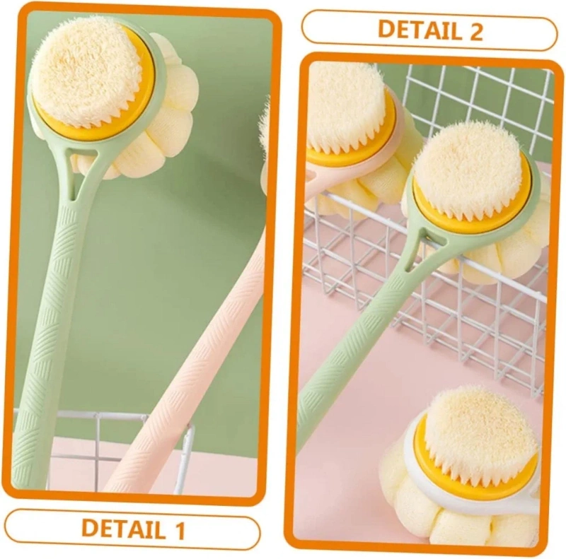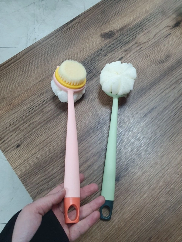2'si 1 Arada Uzun Saplı Duş Fırçası masaj Etkili Kıl ve Lifli Çift Yönlü Banyo Fırçası