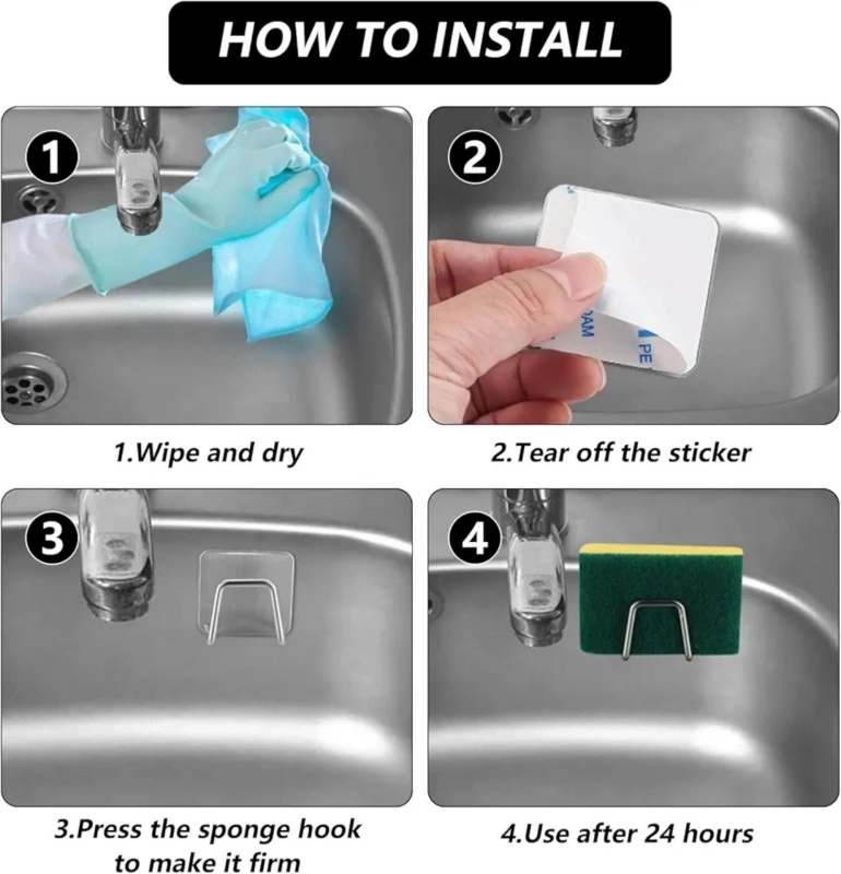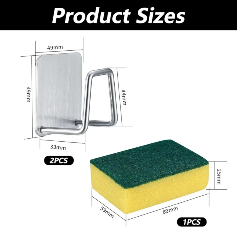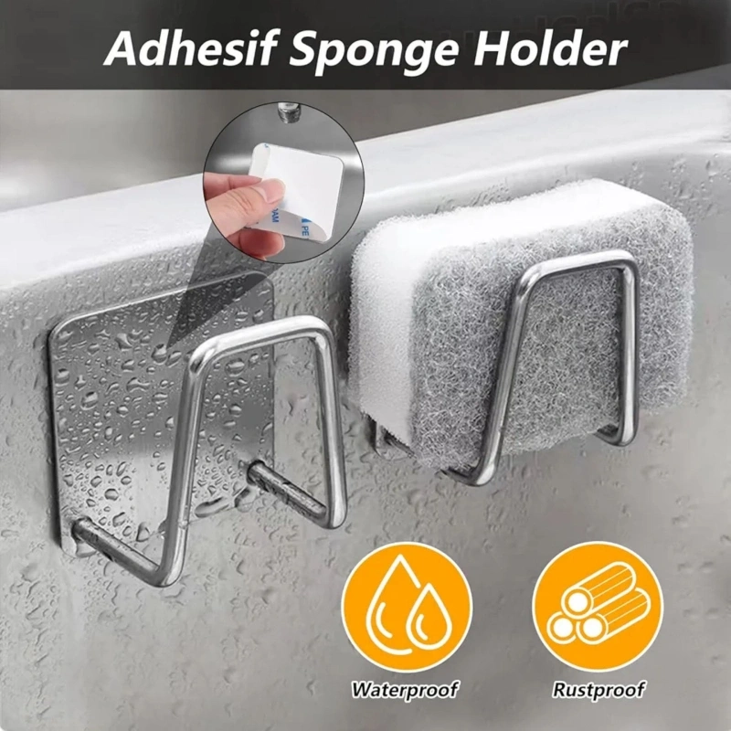 Krom Yapışkanlı Bulaşık Sünger Tutucu Evye Düzenleyici Süngerlik 5 x 5 Cm