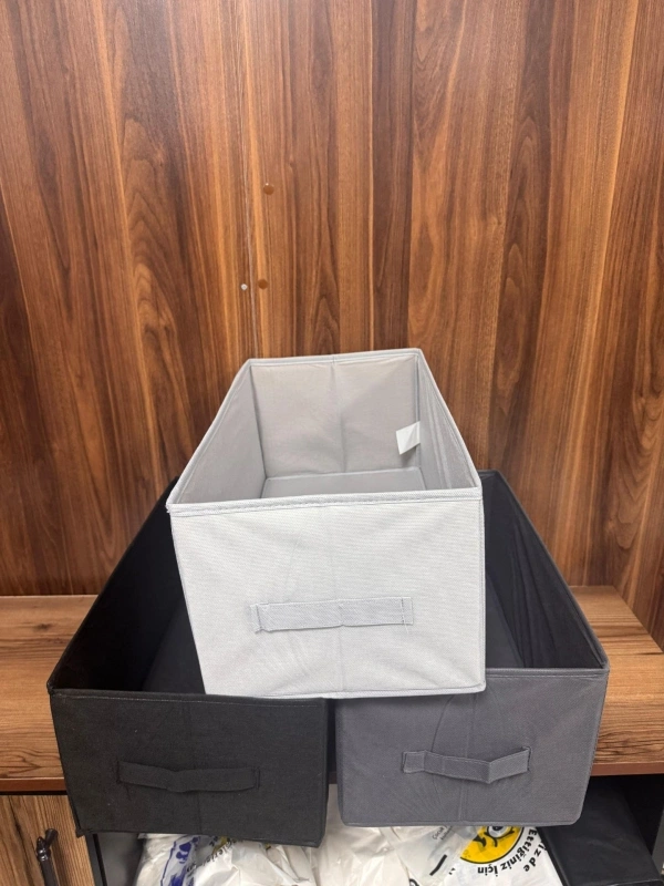 Siyah / Acik Gri / koyu gri Tela Dolap İçi Düzenleyici Kutu Organizer 45x25x20 cm Kazak Havlu Saklama Hurcu Ürün Açıklaması Evinizi Düzenleyen Şık Çözüm: Dekoratif Tela Düzenleyici Kutu Açıklama: Dolap içlerinizde, raflarınızda veya baza altlarında yaşanan karmaşaya son verin! Geniş iç hacmi ve dayanıklı yapısı ile kazaklardan havlulara, oyuncaklardan nevresimlere kadar tüm eşyalarınızı düzenli bir şekilde saklamanızı sağlar. Hava alabilen özel tela kumaş yapısı sayesinde eşyalarınızı nemden ve tozdan korurken kötü koku oluşumunu engeller. Ön tarafında bulunan sağlam tutma kulpu sayesinde raflardan kolayca çekip alabilirsiniz. Öne Çıkan Özellikler: İdeal Boyutlar: 45 cm (Derinlik) x 25 cm (Genişlik) x 20 cm (Yükseklik) ölçüleri ile standart gardırop raflarına tam uyum sağlar. Dayanıklı Malzeme: Yüksek kaliteli, desenli tela (non-woven) kumaştan üretilmiştir. Dik duran formu ile estetik bir görünüm sunar. Pratik Kullanım: Kapaksız açık tasarımı sayesinde eşyalarınızı kolayca yerleştirip görebilirsiniz. Kullanmadığınızda katlayarak saklayabilir, yer tasarrufu yapabilirsiniz. Çok Amaçlı: Kazak, tişört, pantolon, havlu, bebek kıyafetleri veya kişisel eşyalarınızı düzenlemek için idealdir. Bakım Önerisi: Makinede yıkanmaz. Nemli bir bez ile silerek temizlenmesi önerilir.