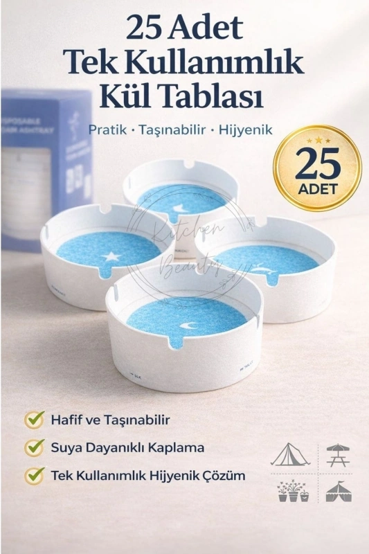Tek Kullanımlık Kül Tablası Kokusuz Taşınabilir Jel Küllük 25 Adet