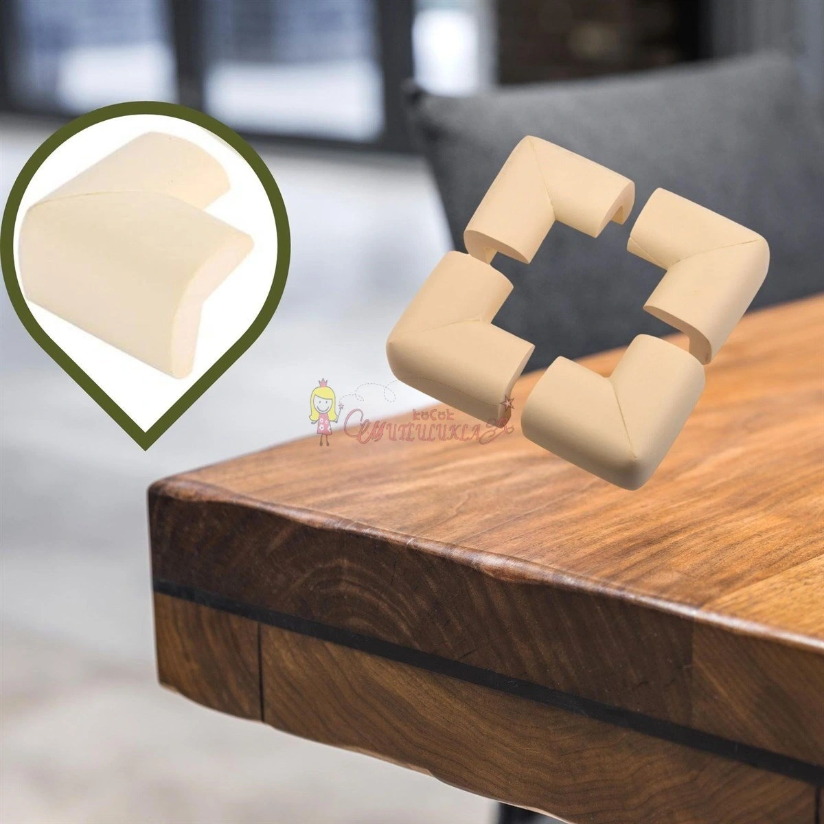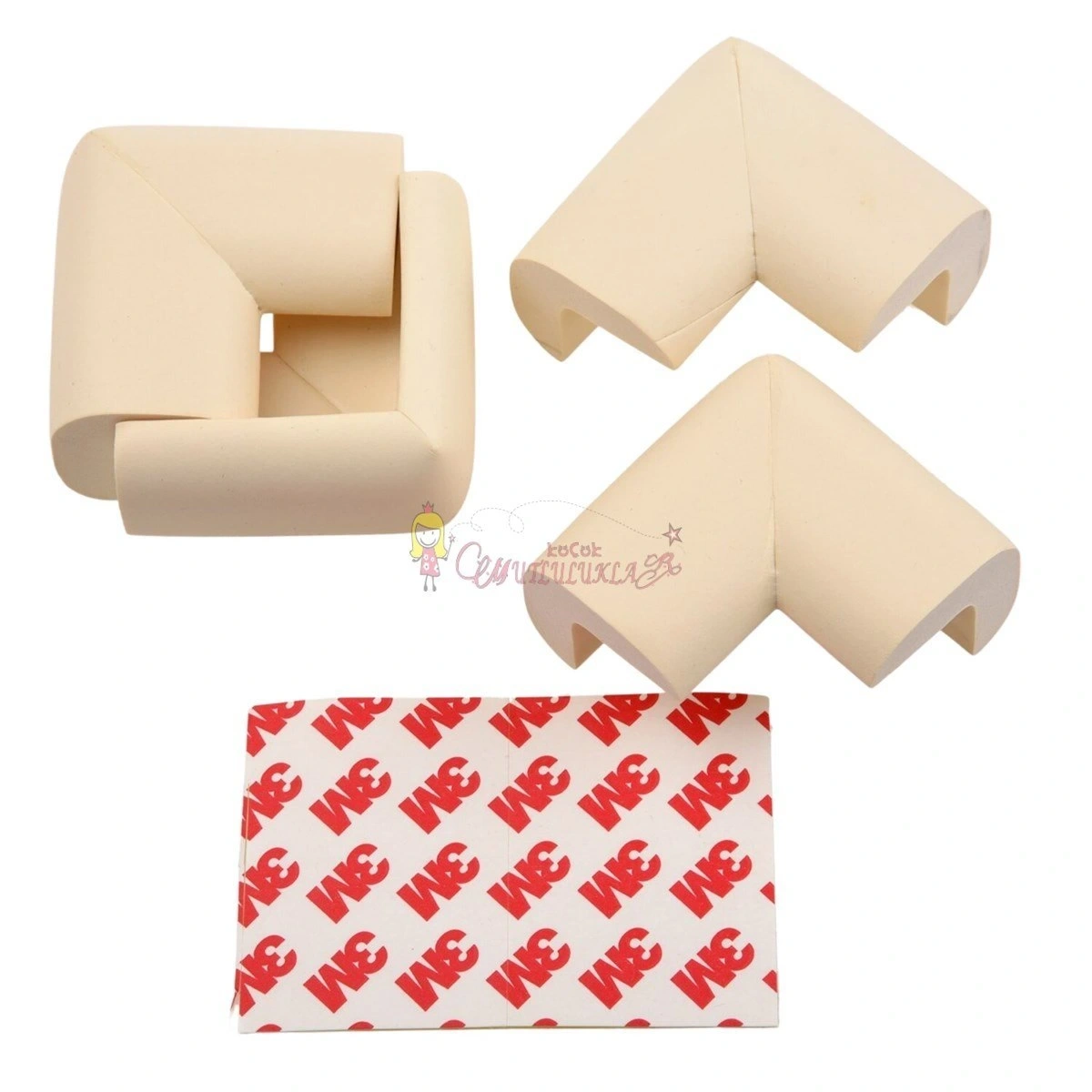 10'lu Bebek Çocuk Güvenliği Emniyetli Cam Masa Ahşap Sehpa Krem Köşe Koruyucu Yastık Sünger