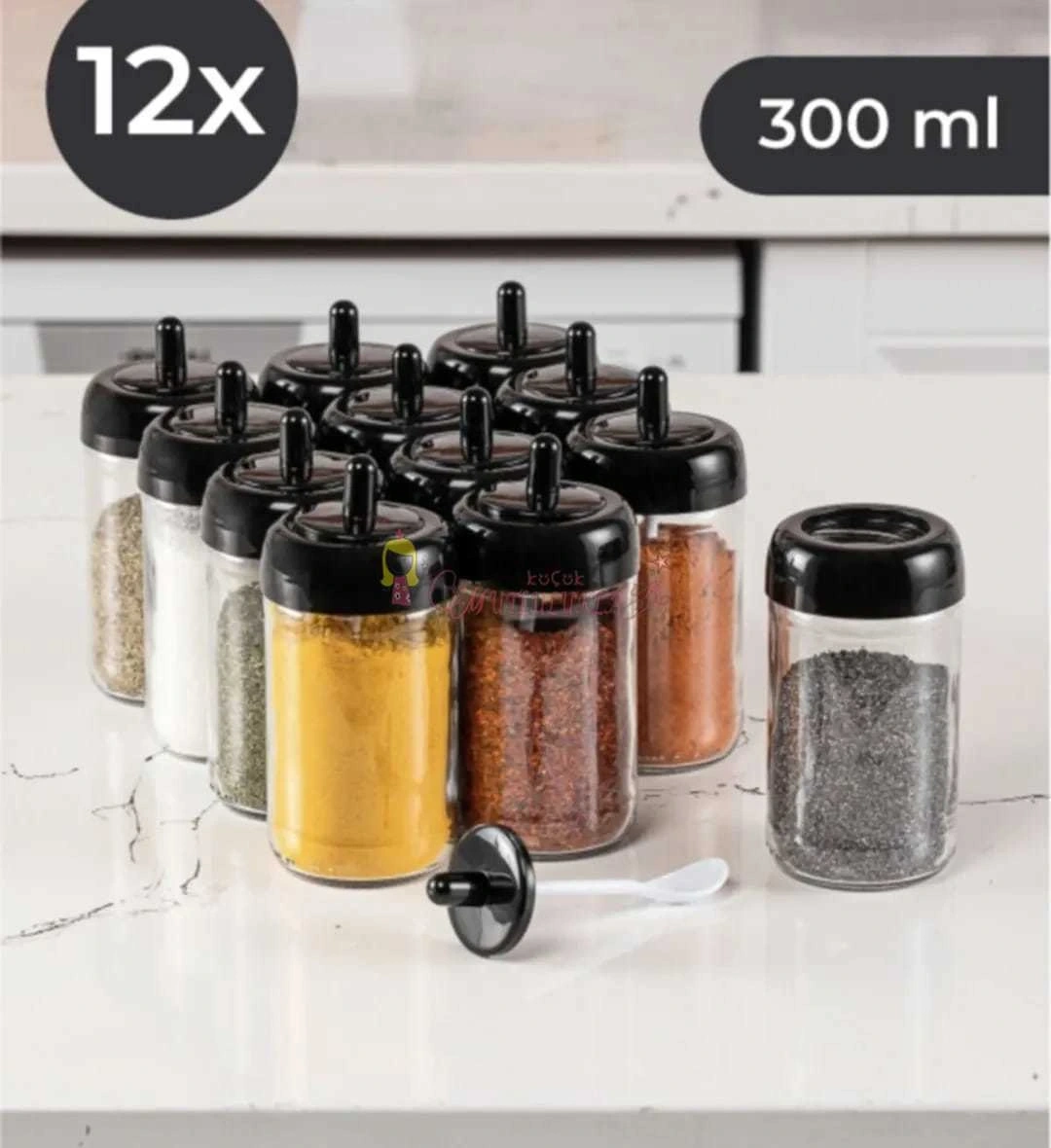 12 Adet Kendinden Kaşıklı Cam Baharat Seti 300 ml