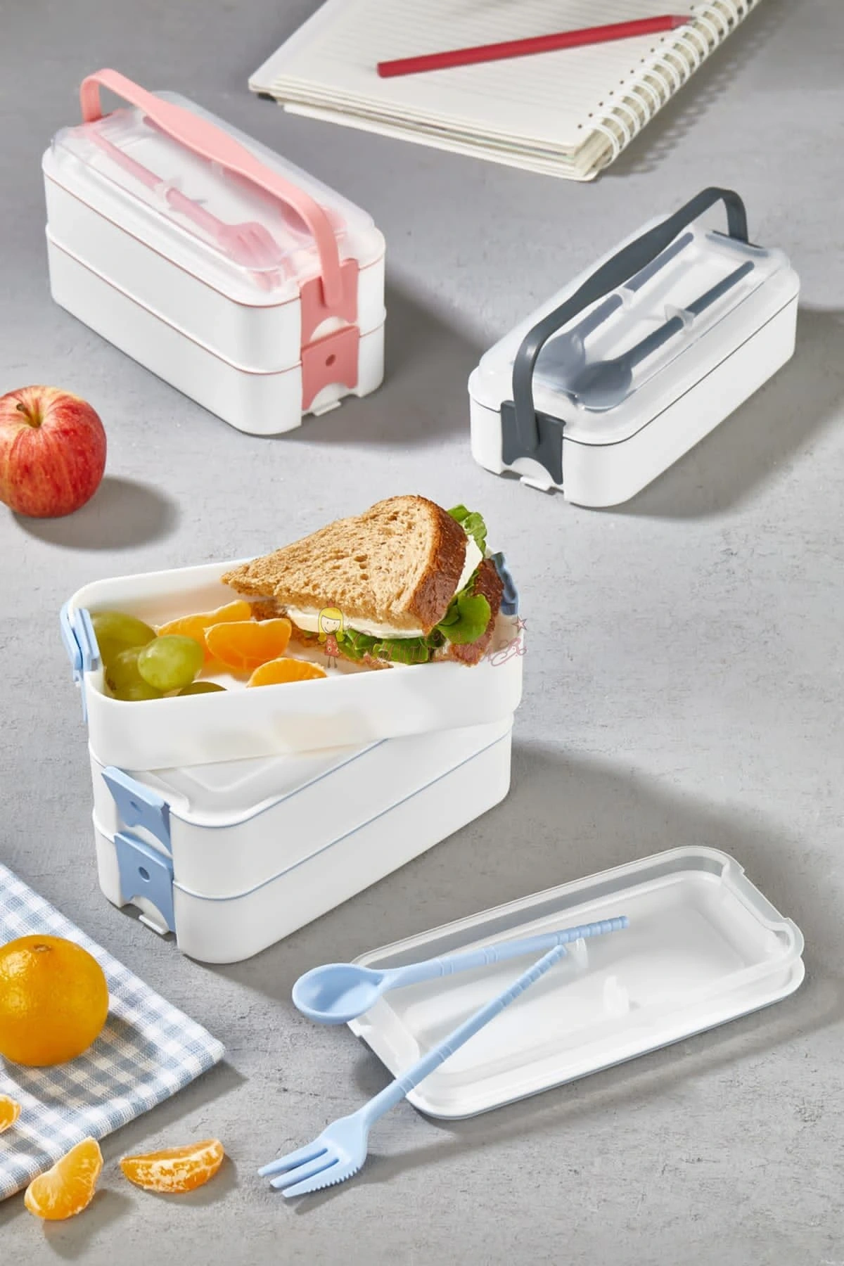 3 Katlı Taşınabilir Yemek Kabı – Lunch Box Diyet Beslenme Saklama Kabı Çatal Kaşıklı