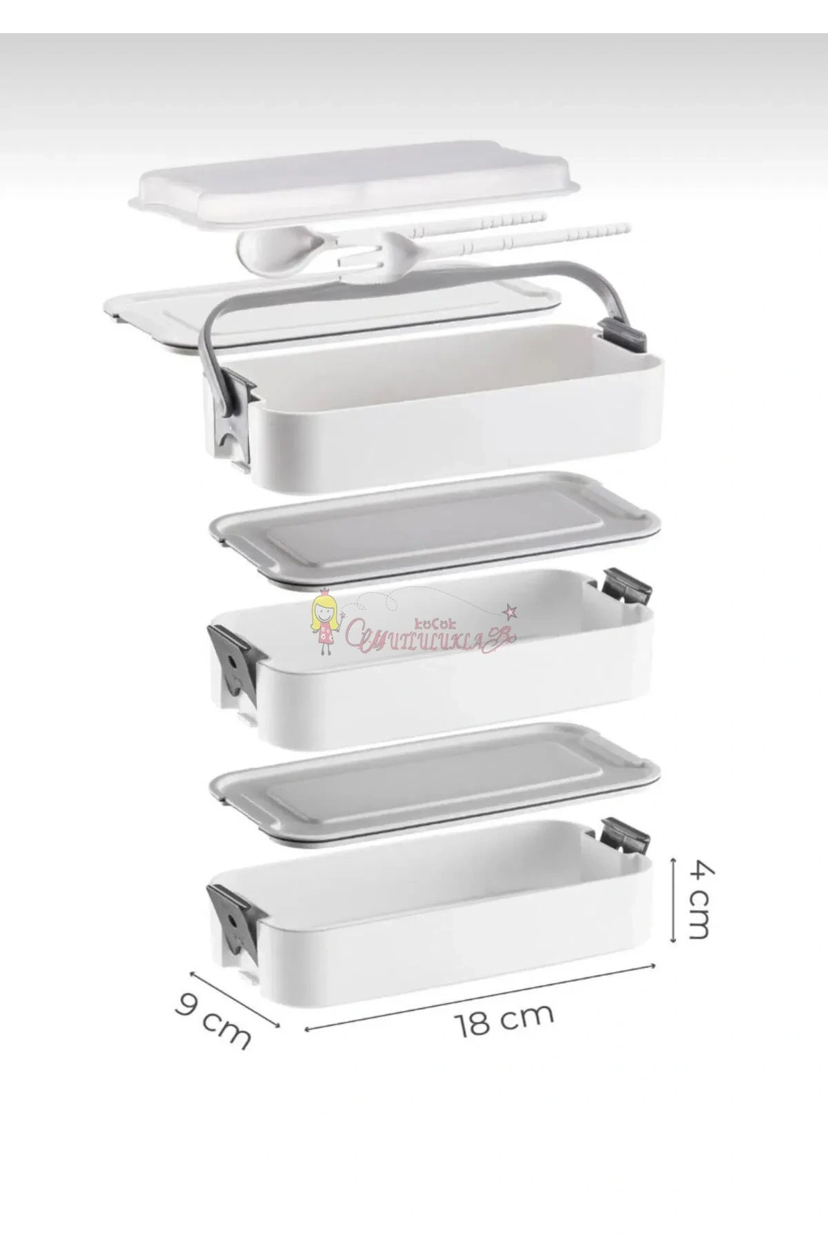 • Kat Kat Lunch Box 3 Bölmeli Taşınabilir Yemek Kabı - Çatal ve Kaşıklı