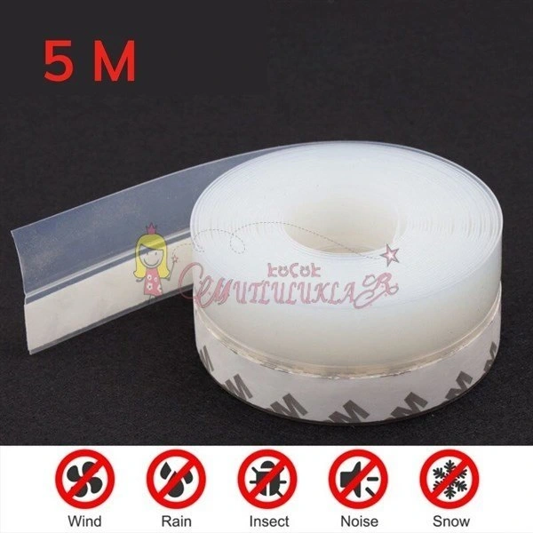 5 Metre Ayarlanabilir Uzunluk Pencere ve Kapı Eşiği Bandı Kendinden Yapışkanlı Silikon Şerit Bant