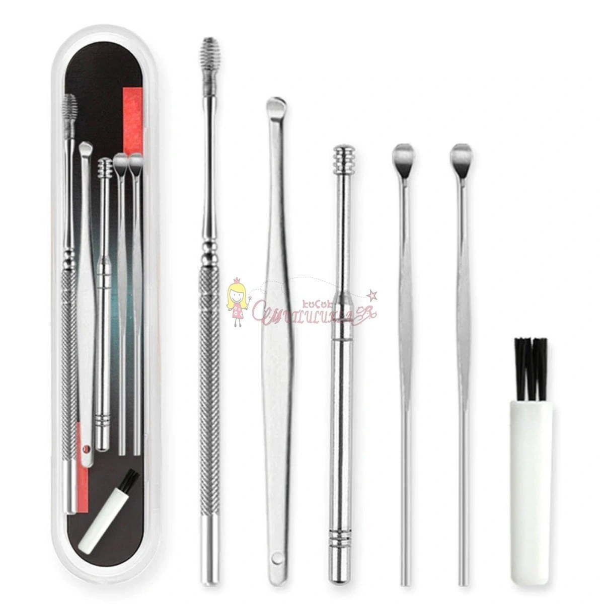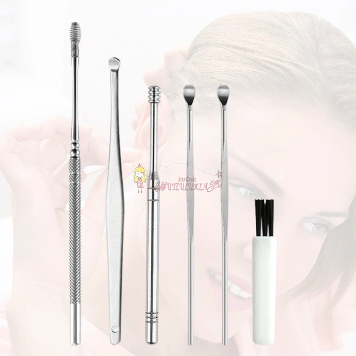 6 Parça Paslanmaz Çelik Kulak Balmumu Toplayıcı Çıkarıcı Temizleyici Bakımı Çubuk Seti