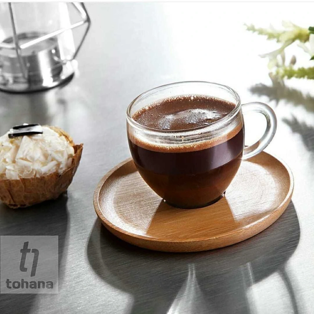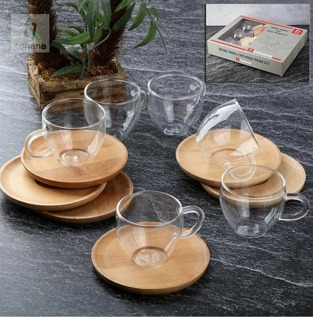 6'lı Bambu Tabkli Kahve fincani Takimı Stokta malzmesi bambu ve borosilikat camın uyumu sunumlarinıza renk katacak ✔