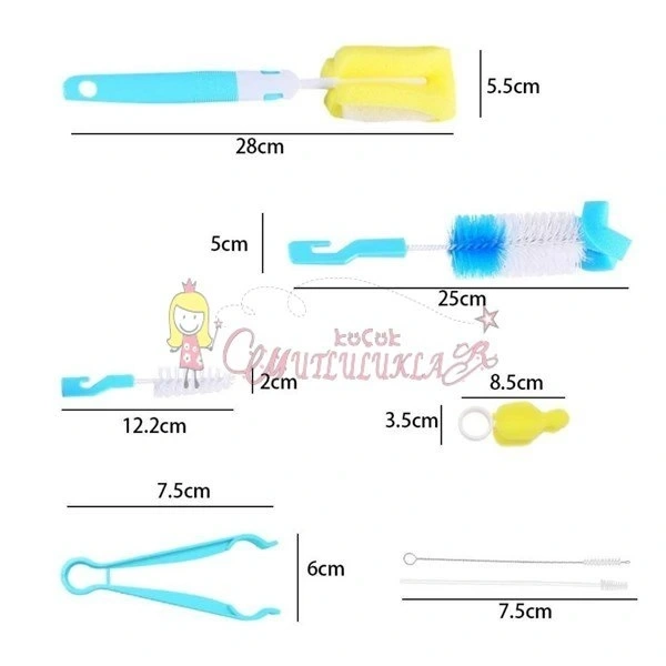 7 farklı başlığı sayesinde fırçalar şişe, kavanoz, sürahi, termos, biberon gibi araçlarda kullanılırken kolaylık sağlar.