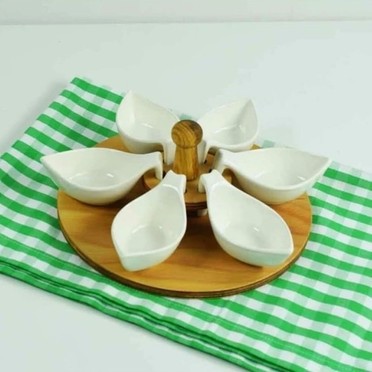 Ahşap Standlı 6lı Kulplu Sivri Oval Sosluk Stokta