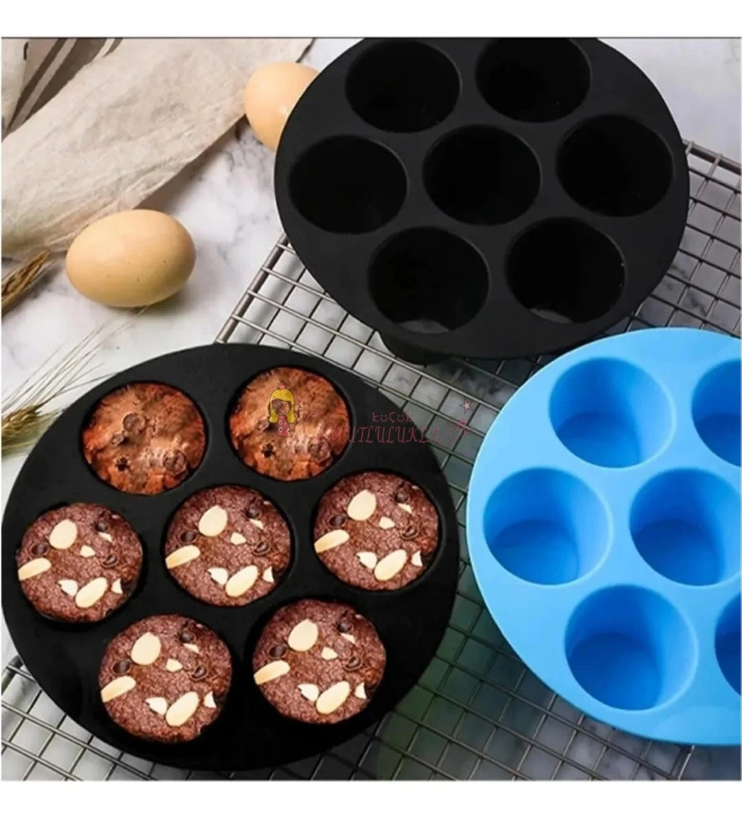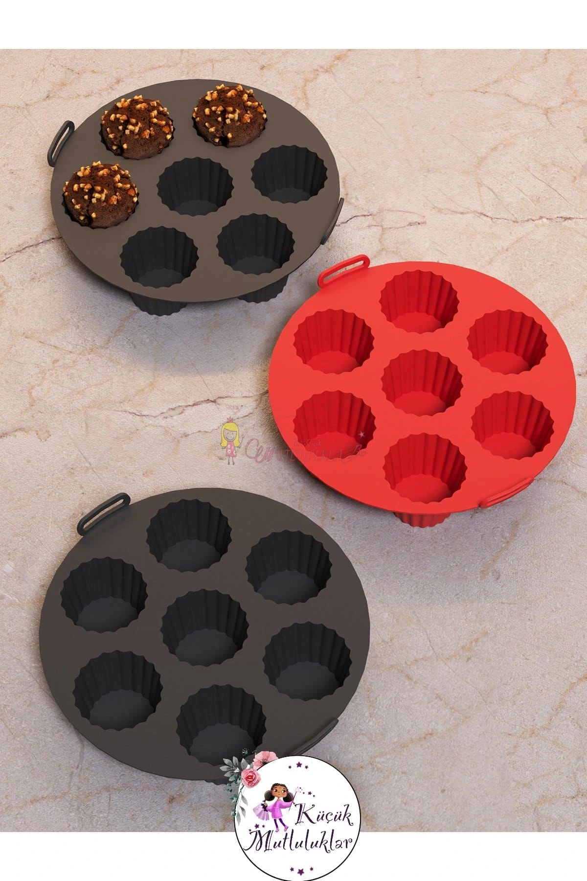 • Siyah Renk Airfryer Silikon Muffin Kek Kalıbı - 7 Gözlü Hava Fritözü Kek ve Çörek Pişirme Kalıbı Aksesuarı Özellikler: Malzeme: Silikon malzemeden üretilmiştir, yumuşaktır.