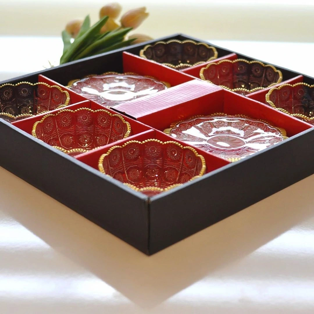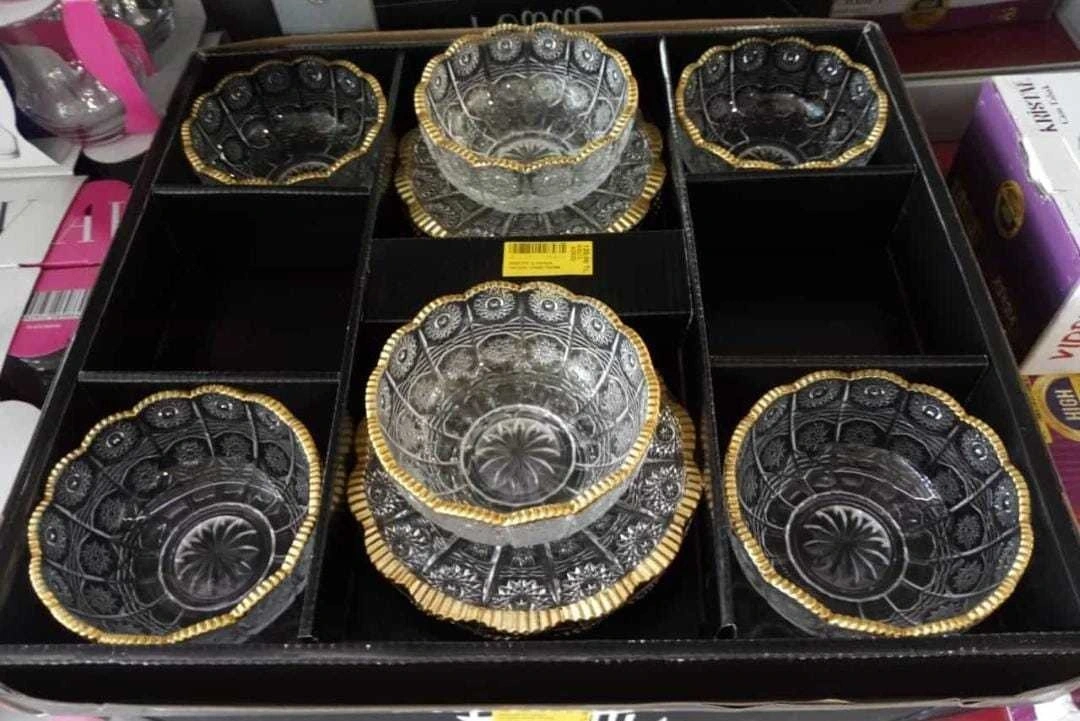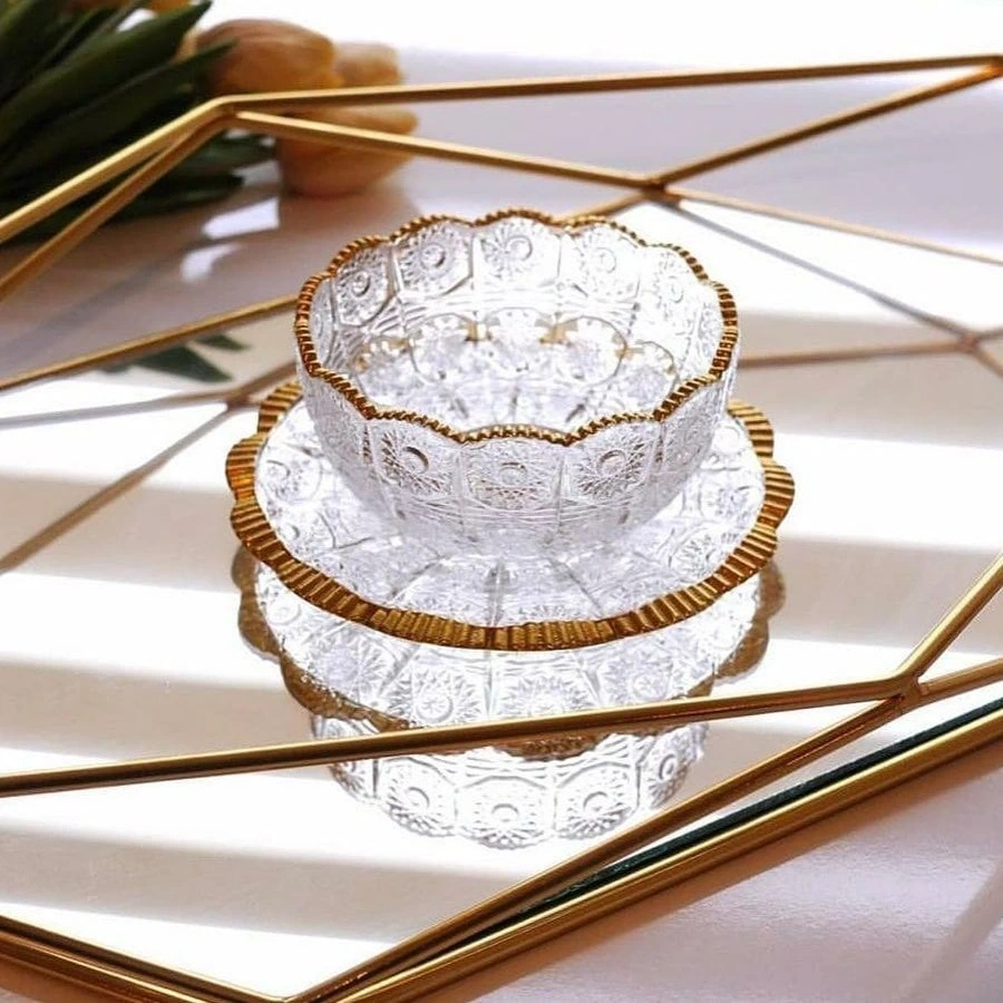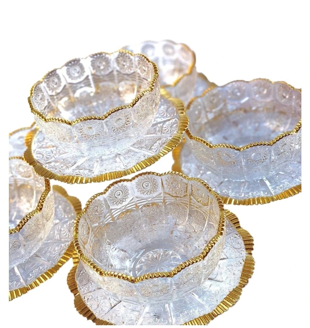 ALTIN YALDIZLI CAM 6'LI TABAKLI KASE