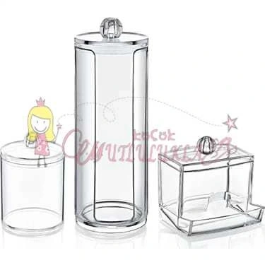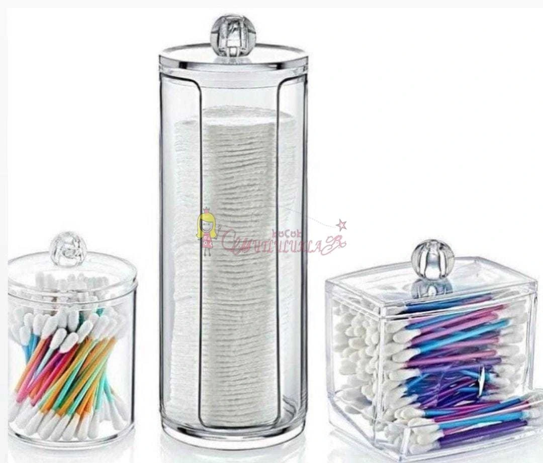 • Kulak çubuğu, makyaj pamuğu ve makyaj malzemeleriniz için 3'lü set!
