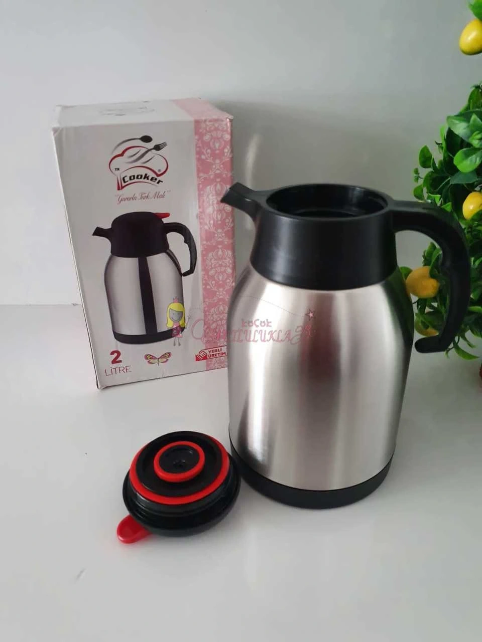 Cooker Paslanmaz Çelik Termos 2 litre * Çift kat paslanmaz ve kırılmaz çelik.* İçi 304 Dışı 201 paslanmaz çeliktir* Modern ve şık tasarıma sahip* Ergonomik ve kolay kullanımlı* 12 saat içilebilir düzeyde sıcak ve soğuk koruyabilen %100 yerli sermaye ile üretilmiş Türkiye'nin tek yerli ve milli ürünüdür* İç koruyucu ambalaj ve ofset kutuda gönderiyoruz 2 yıl garantisi vardır.* Bulaşık makinesi için uygun değildir.* Bebekler, okul çağındaki çocuklar, kamp, piknik uzun yolda içeceklerinizi sıcak ve soğuk koruyarak rahatça kullanabilirsiniz
