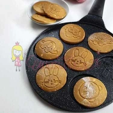 Ev Döküm Granit Hayvan Figürlü Pankek Tavası Siyah