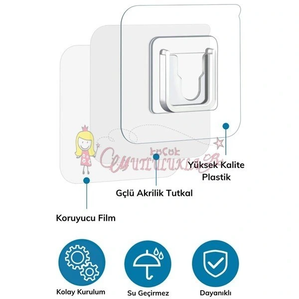 Kolayca ve rahatça asmak için birlikte eşleşen iki parça kanca ile eşyalarınızı asmak çok daha pratik.