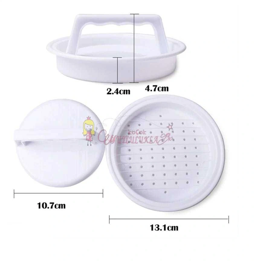 Hamburger ya da Köfte malzemelerini kalıbın içine ekleyin ve pres aparatıyla bastırınız. Çok kolay bir şekilde köfte/hamburgeriniz şeklini alır ve pişirmeye hazır olur. Afiyetle yiyebilirsiniz.