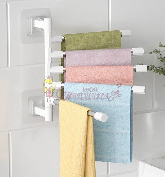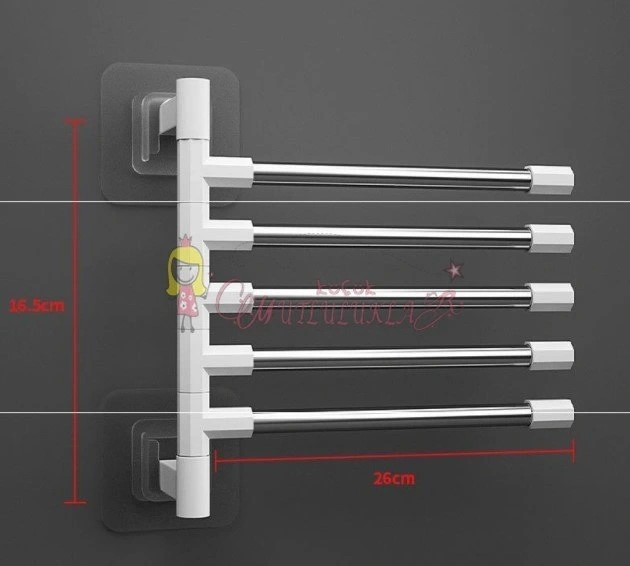Teleskobik duvara monte180 derece dönme açılı 5li havlu askısı