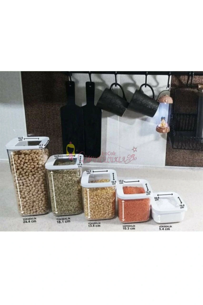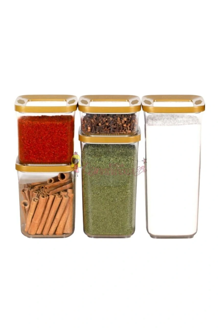 Hobi Box 5'li Kare Kristal Saklama Kabı 5'li Set Gold Beyaz  Kapak stokta