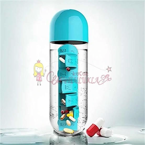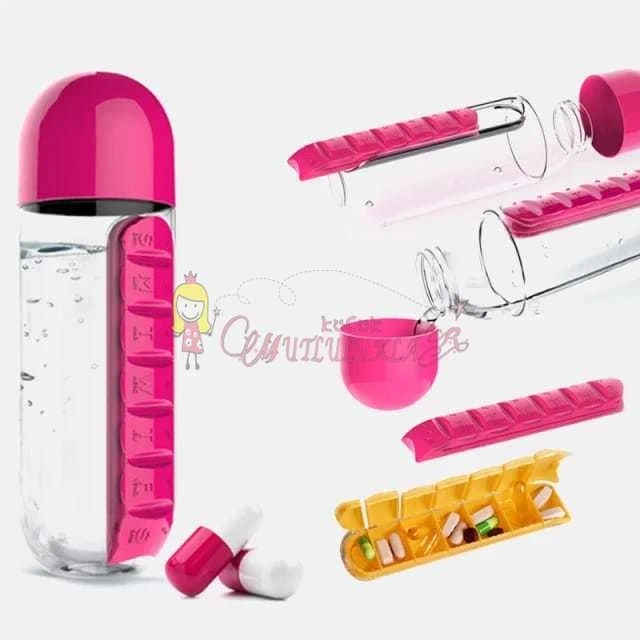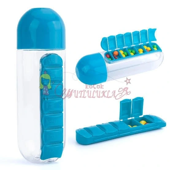 Birleştirmek Su şişesi ile günlük hap kutusu organizatör. Şişe tutar En sevdiğiniz içeceğin 20oz/600ml, ayrıca yerleşik bir hap saklama kutusu Haftanın her günü için 7 ayrı bölme mevcuttur.