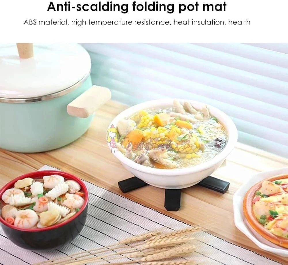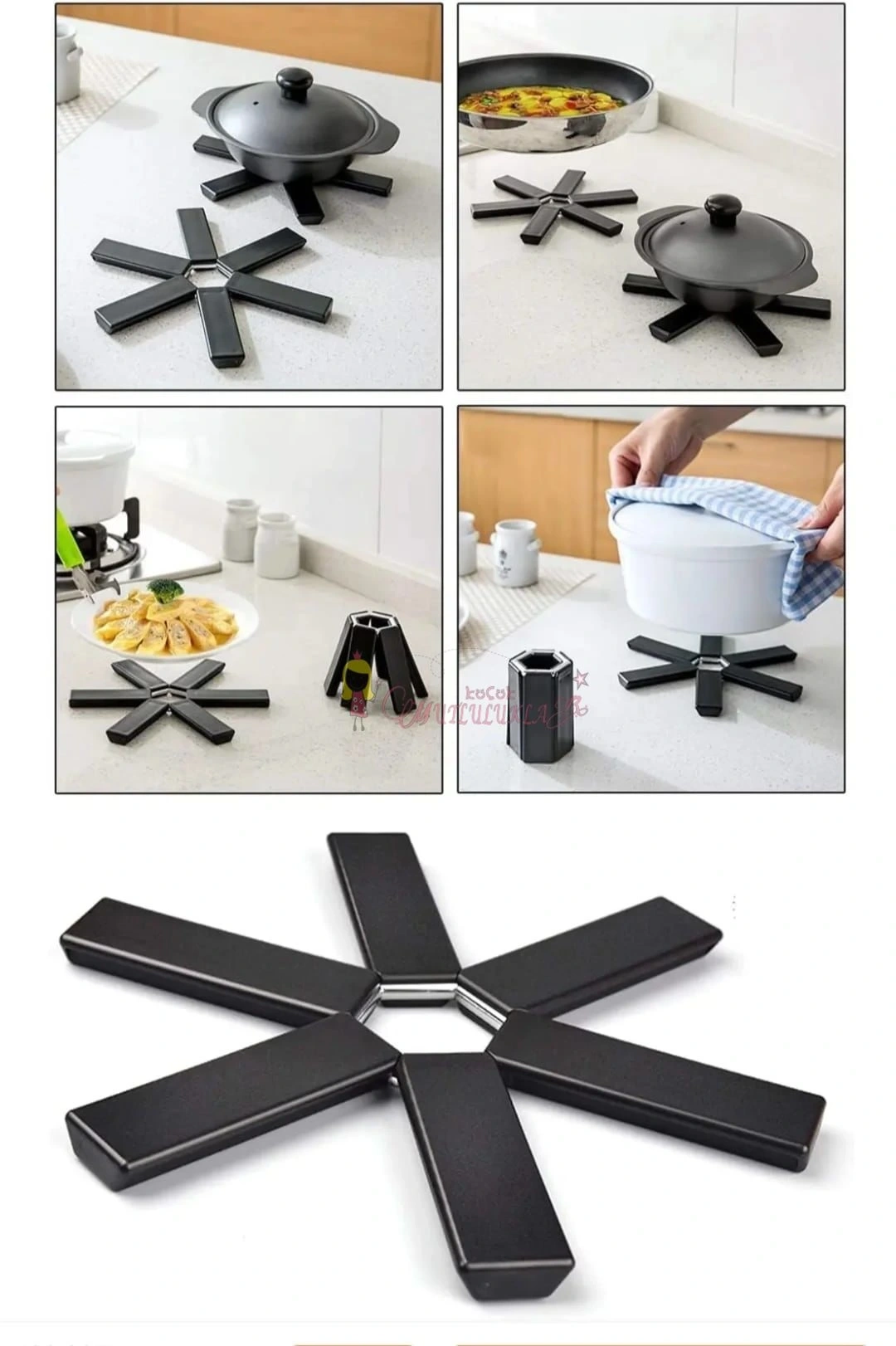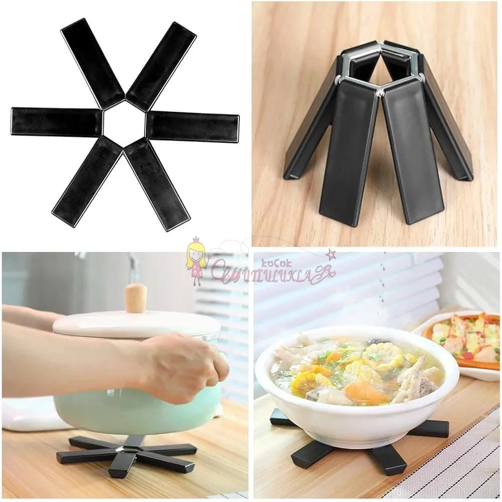 Mutfakta kullanım için tasarlanmış pratik ve katlanabilir bir sıcak tencere altlığıdır. Bu ürün, sıcak tencereleri ve tavaları güvenle yerleştirmeniz ve yüzeylere zarar vermeden korumanız için ideal bir çözümdür. Aynı zamanda katlanabilir tasarımı, depolama ve taşıma konusunda da kullanıcıya büyük bir esneklik sağlar.