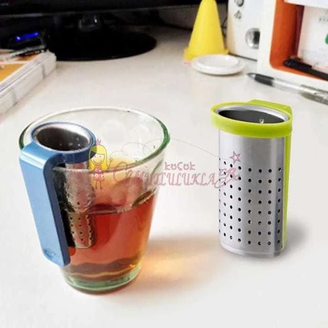 açık yeşil-mavi Uzunluk: 6.5 cm Paket miktarı: 1 adet Fincan kenarına asılabilen pratik çay süzgeci. Süzgeci, içinde kalan su kulpa akacağından masaya damlatmadan rahatça bırakabilirsiniz. İlk kullanımdan önce ürünü yıkayın. Bulaşık makinesine girebilir. Gövde:Paslanmaz çelik Üst kısım:Polipropilen plastik