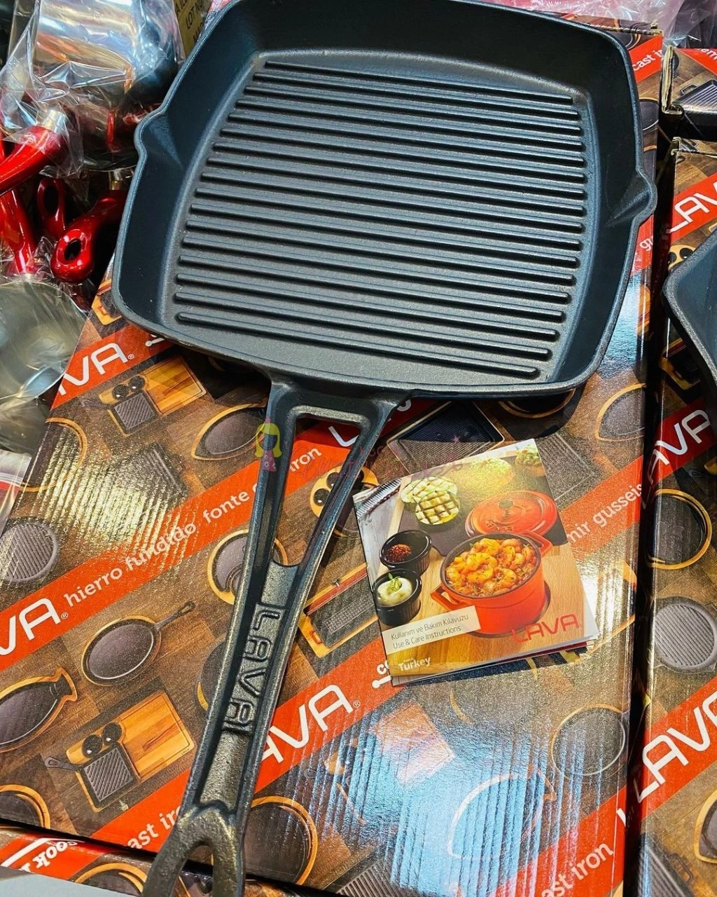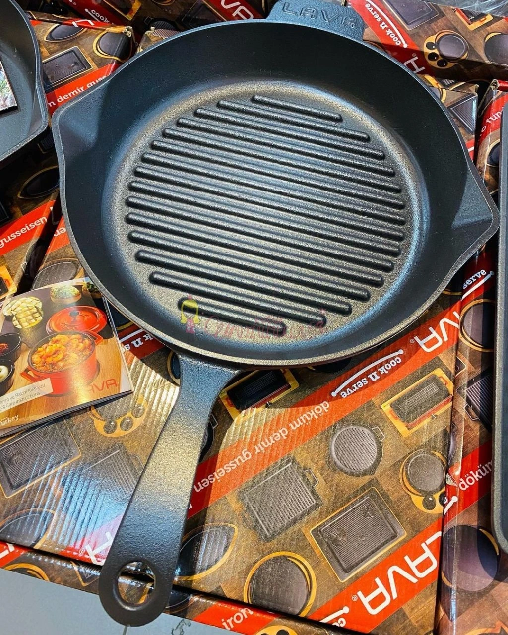 Lava döküm yuvarlak ızgara tava sapli 26 cm