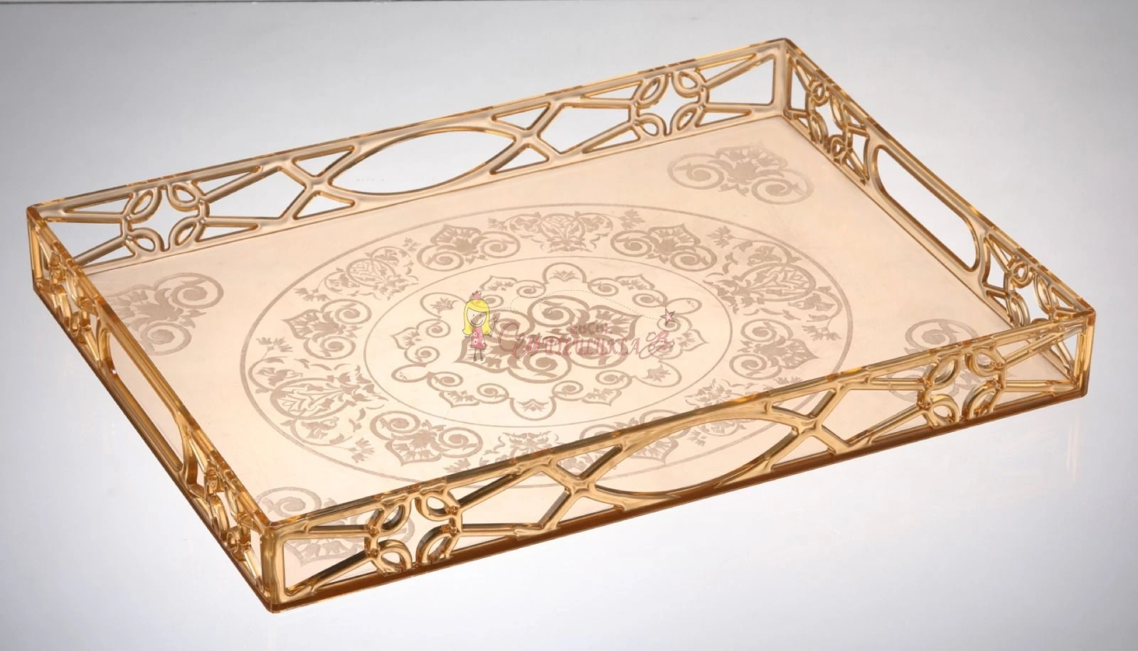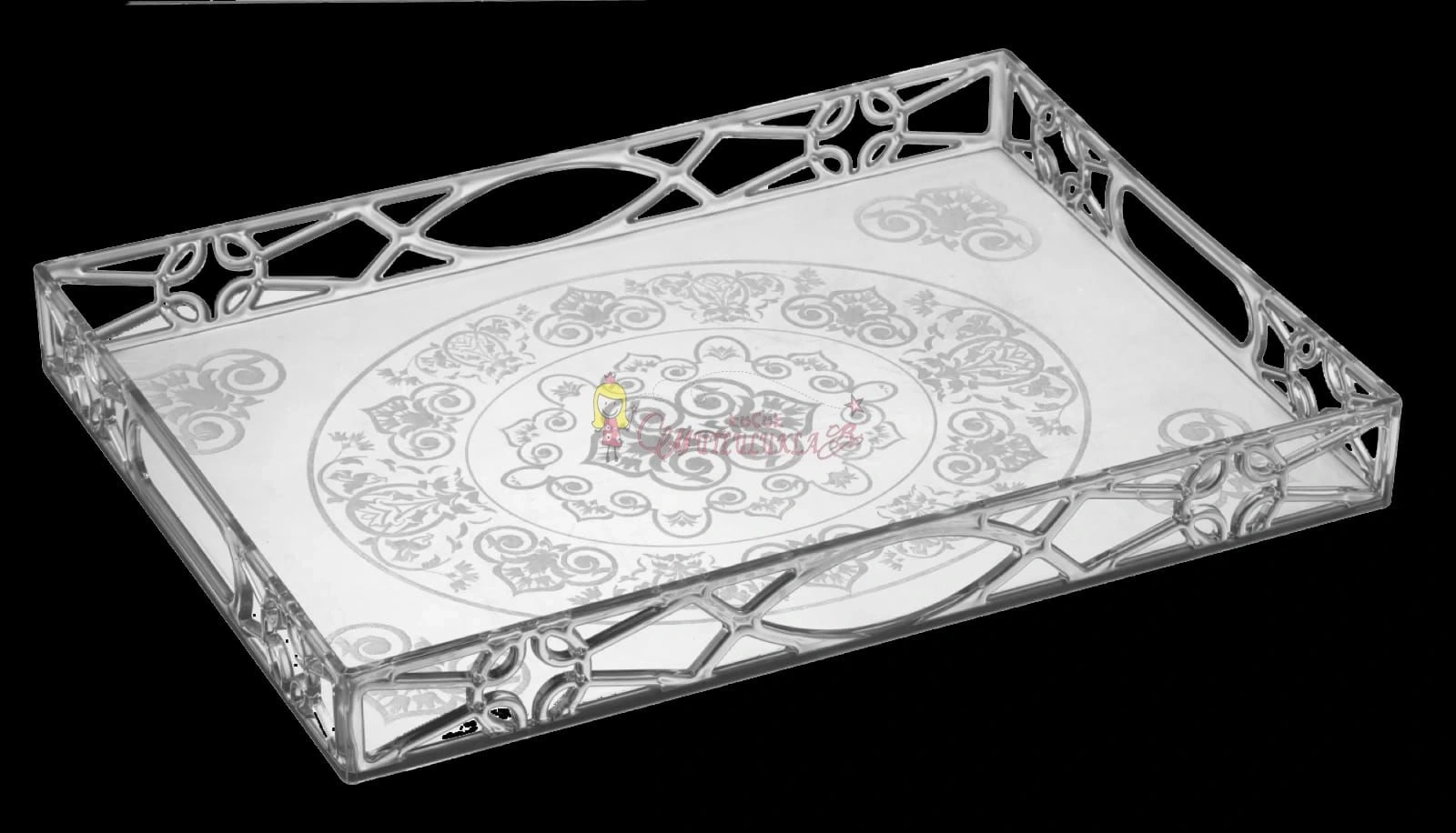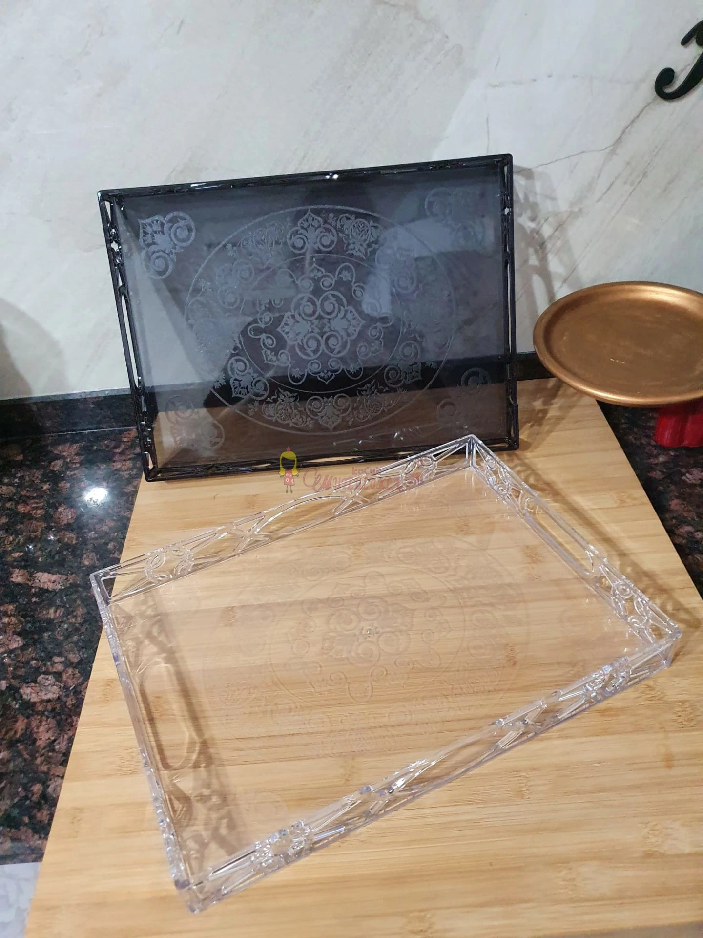 • Şeffaf Lüks Pleksi Sunum Tepsisi Tutma Saplı Akrilik Kristal Mikadır.