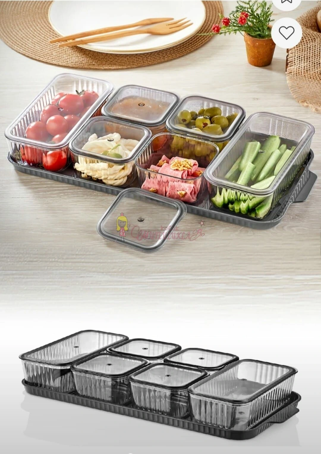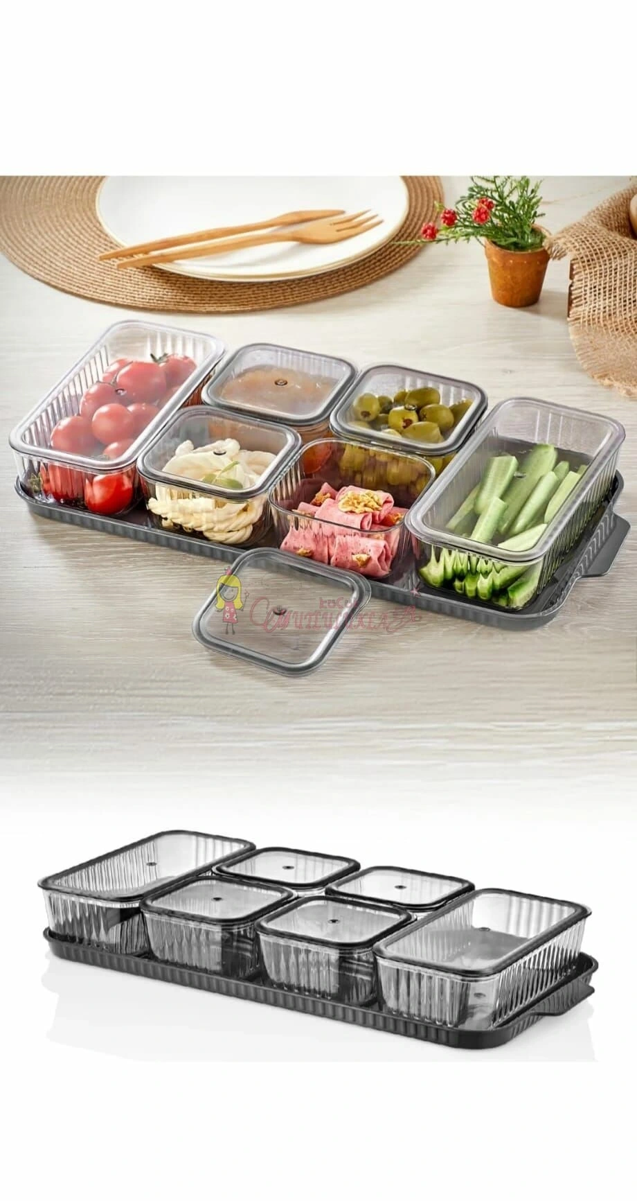 Lüx 6 Bölmeli Tepsili Antrasit ve Sefaf Kristal Kahvaltılık Saklama Kabı STOKTA