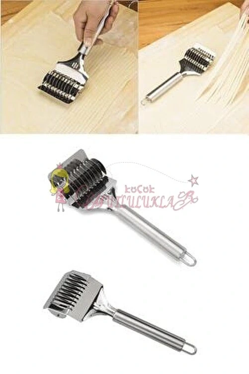 Paslanmaz çelikten yapılmış, korozyona dayanıklı, kullanımı kolay Erişte Kesici aletErişte, yeşil soğan, maydanoz, sarımsak, zencefil, kişniş vb. kesmek için kullanılabilir.Hızlı, eşit kesim ile zaman ve emek tasarrufu sağlar. 9 adet 360 derece dönen silindirik, esnek ve pürüzsüz, keskin yuvarlak bıçaklar ile tek seferde 8 boy erişte kesebilir.100% yüksek kaliteli Paslanmaz çelik Zararsız, kolay temizlenebilir malzeme, uzun süre kullanım için dayanıklıdır. Bıçak ayna yüzeyi pürüzsüzdür, kalıntı kalmaz kolayca yıkanır.Sapında askı deliği ile kolayca istiflenir. Ölçüler: Boy: 22 cm - Kesici Kafa Genişliği: 7 cm Paket içeriği: 1 adet paslanmaz çelik rulo erişte kesici