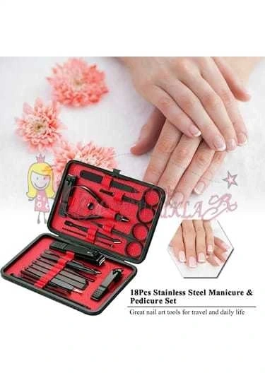 Paslanmaz Çelik Manikür Pedikür Seti El Ayak Tırnak Makası 18 Parça Stokta