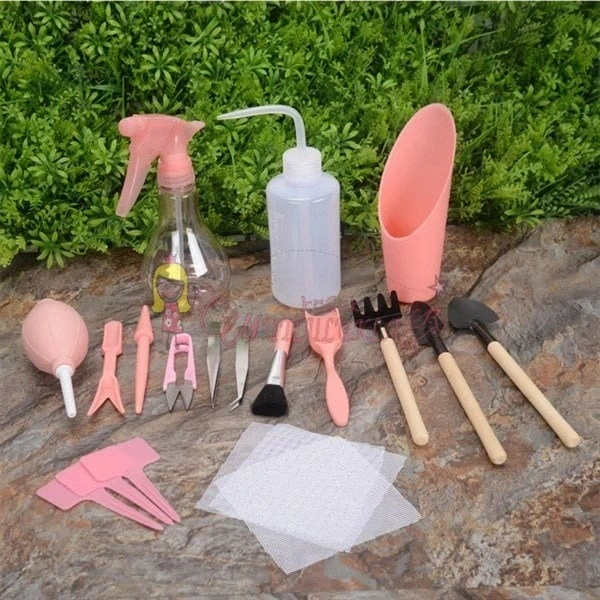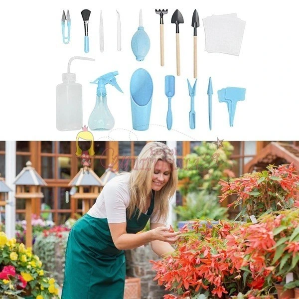 Kazma, toprağı gevşetme, ekme, sulama, budama vb.bir çok özelliği bünyesinde barındıran 16 Parça Minyatür bahçe aletleri seti Bitki Ekim ve Bakım Seti , sukulent bonsai,orkide,süs bitkileri ve küçük bitkiler için idealdir.