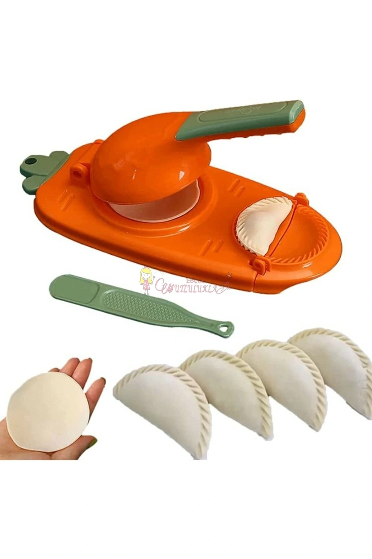• Pratik Mantı Börek Poğaca Hamur Açma Kapatma Aparatı Seti: Pakette turuncu renk 1 adet 2'si 1 arada manuel hamur açma kapama makinesi vardır Görseldeki iç koymak için spatula görsel amaçlı olup paket içeriğinde mevcut değildir.