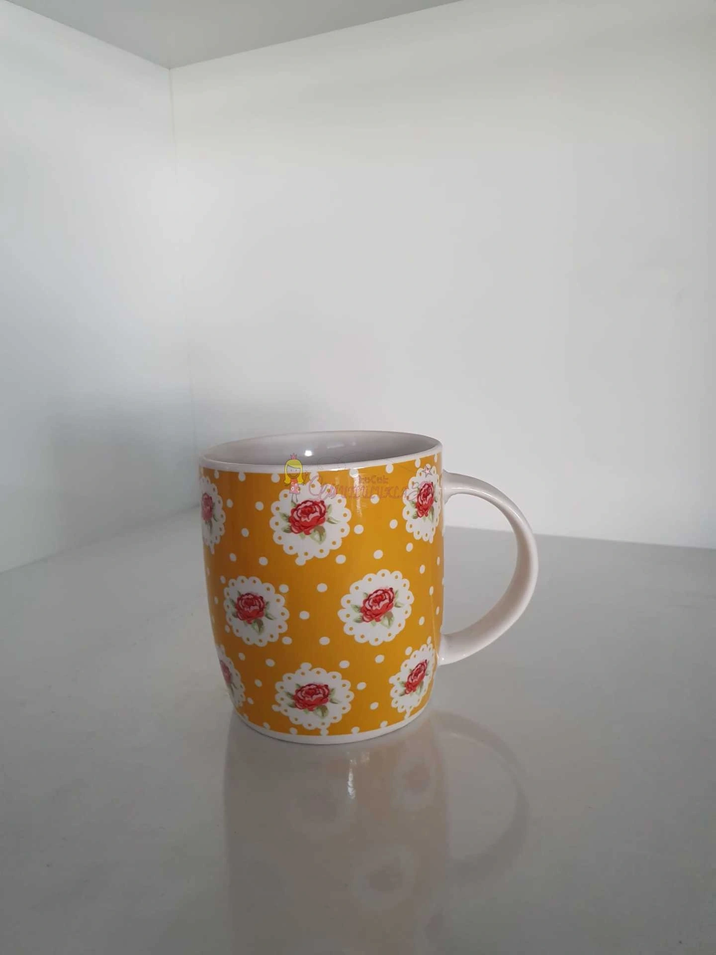 SARI ÇİÇEK DESEN PORSELEN KUPA