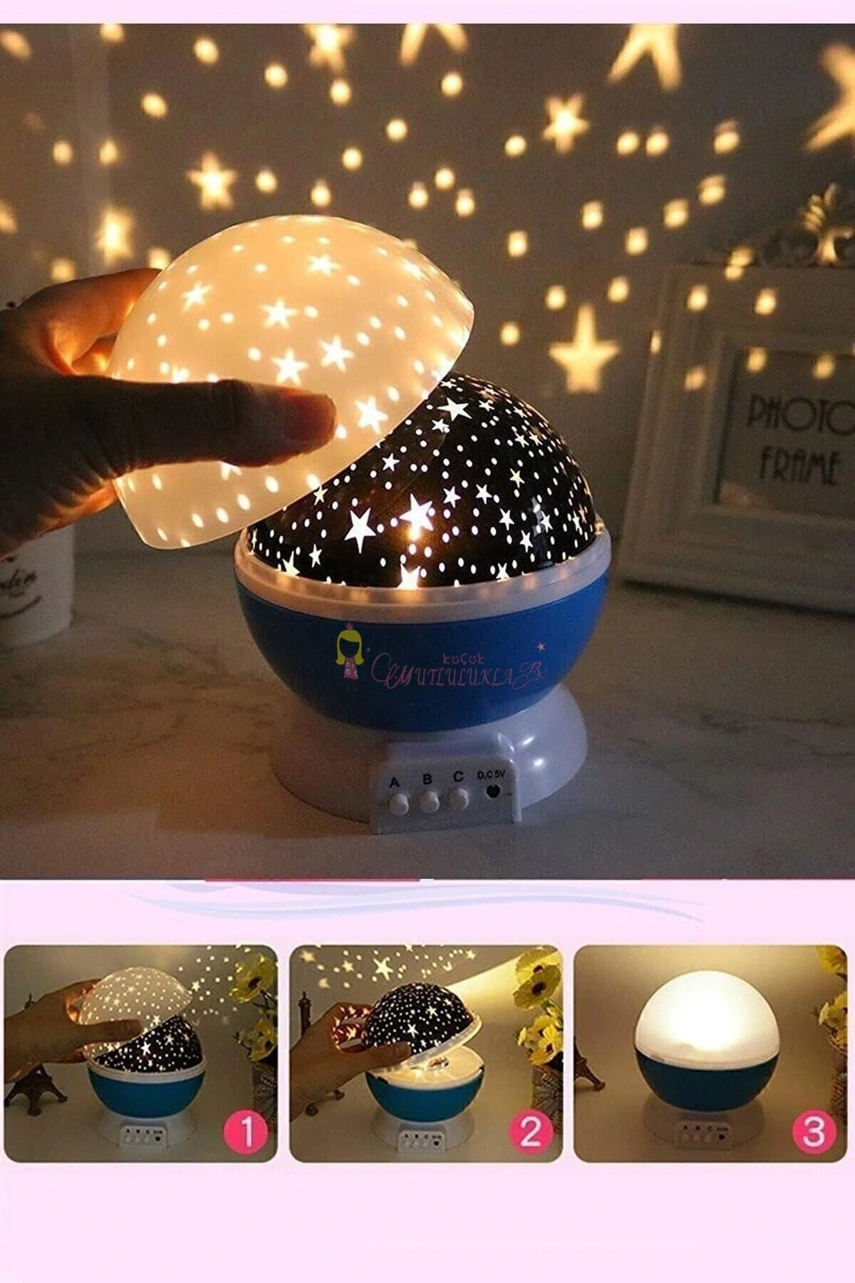 • Bu lambalar, yıldız, ay, gezegen ve galaksi gibi gökyüzü öğelerini yansıtan LED ışık kaynaklarına sahiptir.